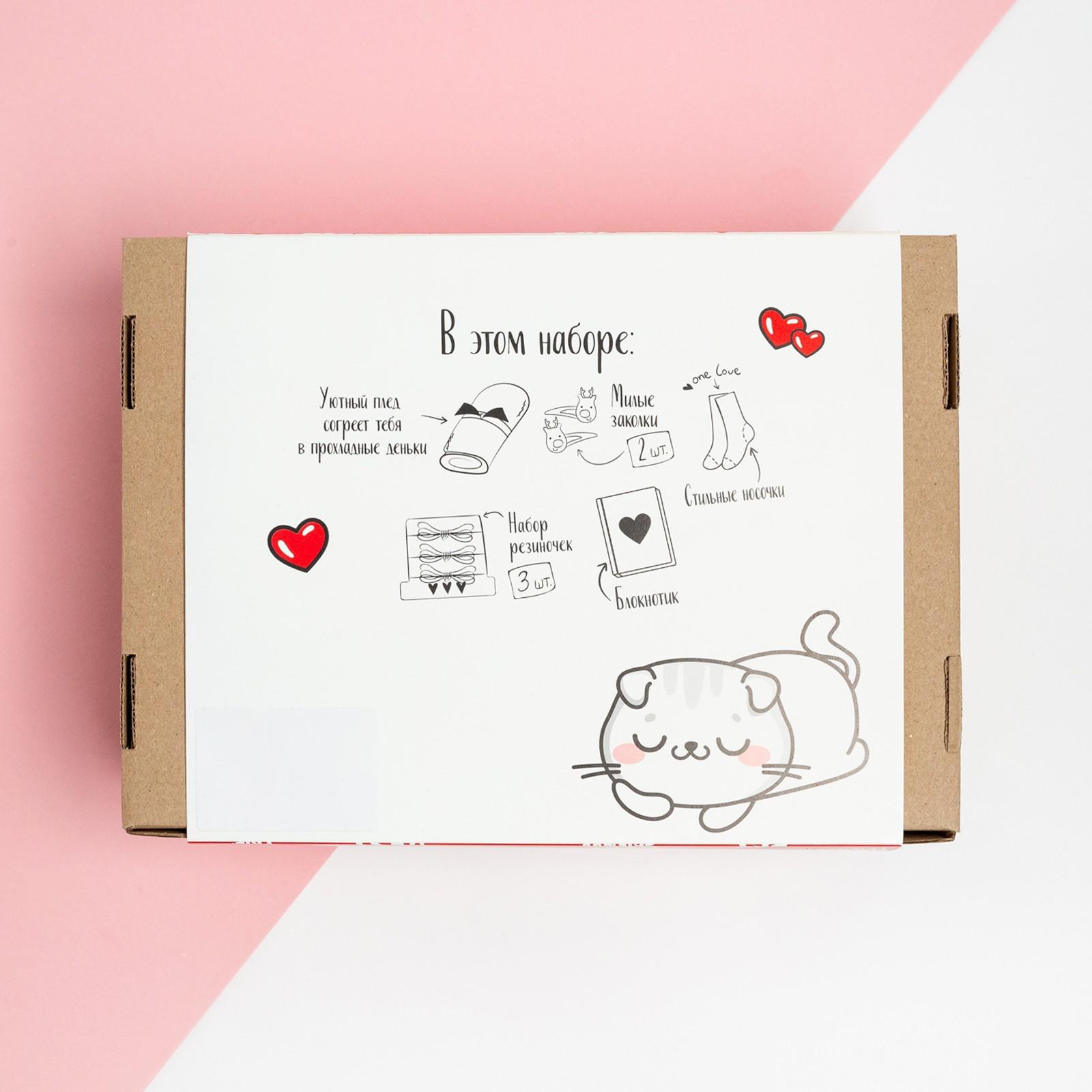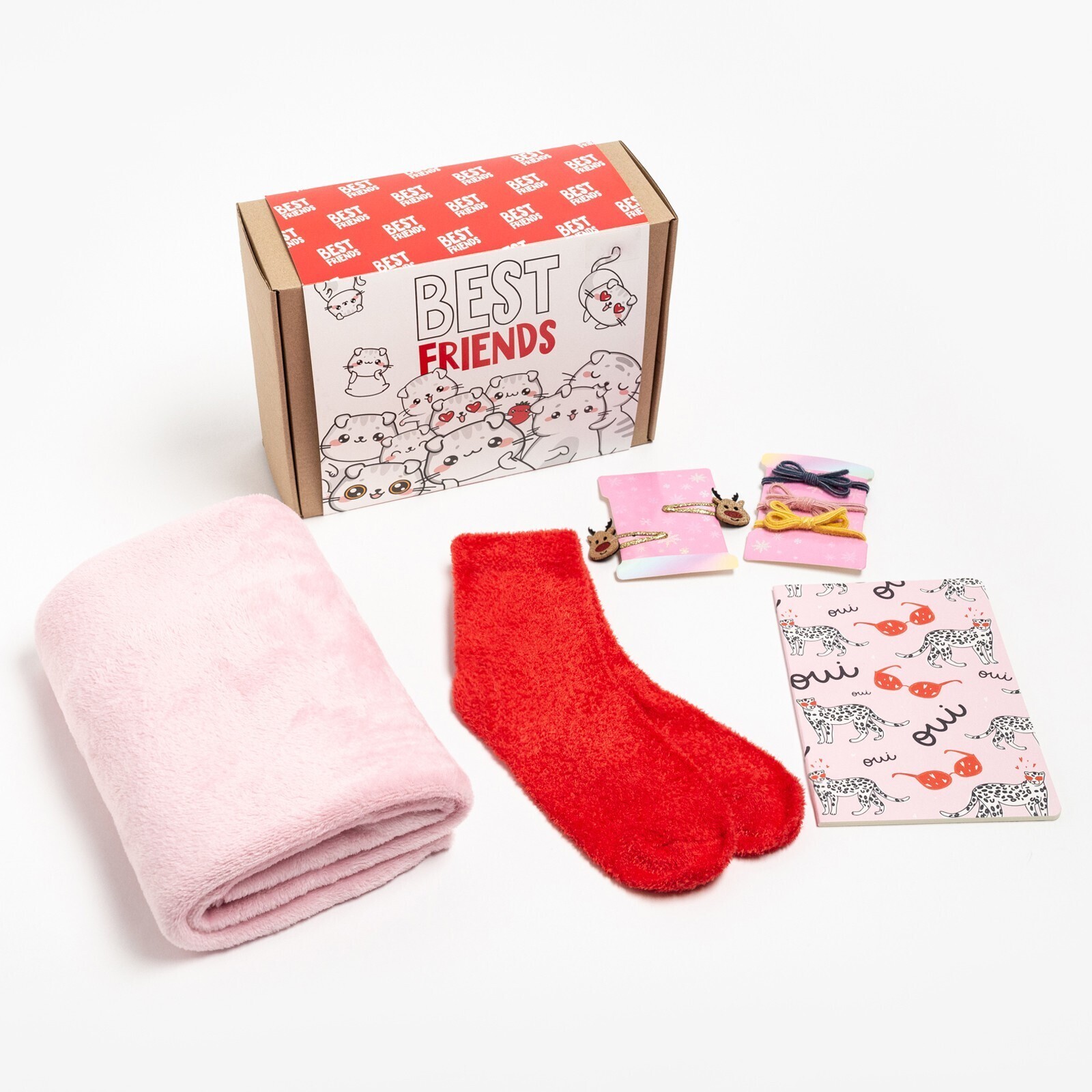 • Составляющие набора Блокнот, Заколка, Носки, Плед, Резинка