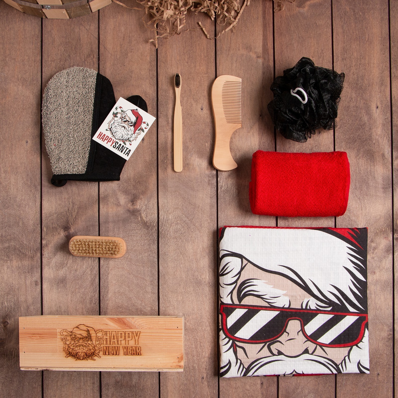 Набор подарочный Этель Happy Santa полотенце 70х146см и аксс (7 предм) 7355217