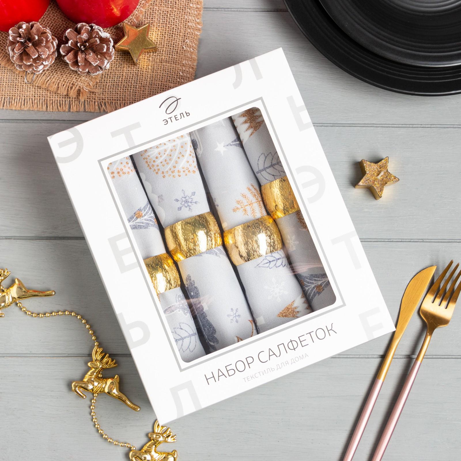 Набор салфеток с декорат. кольцами "Let it snow" 40х40 см - 4 шт, 100% хл, саржа 190гр/м2 7091215