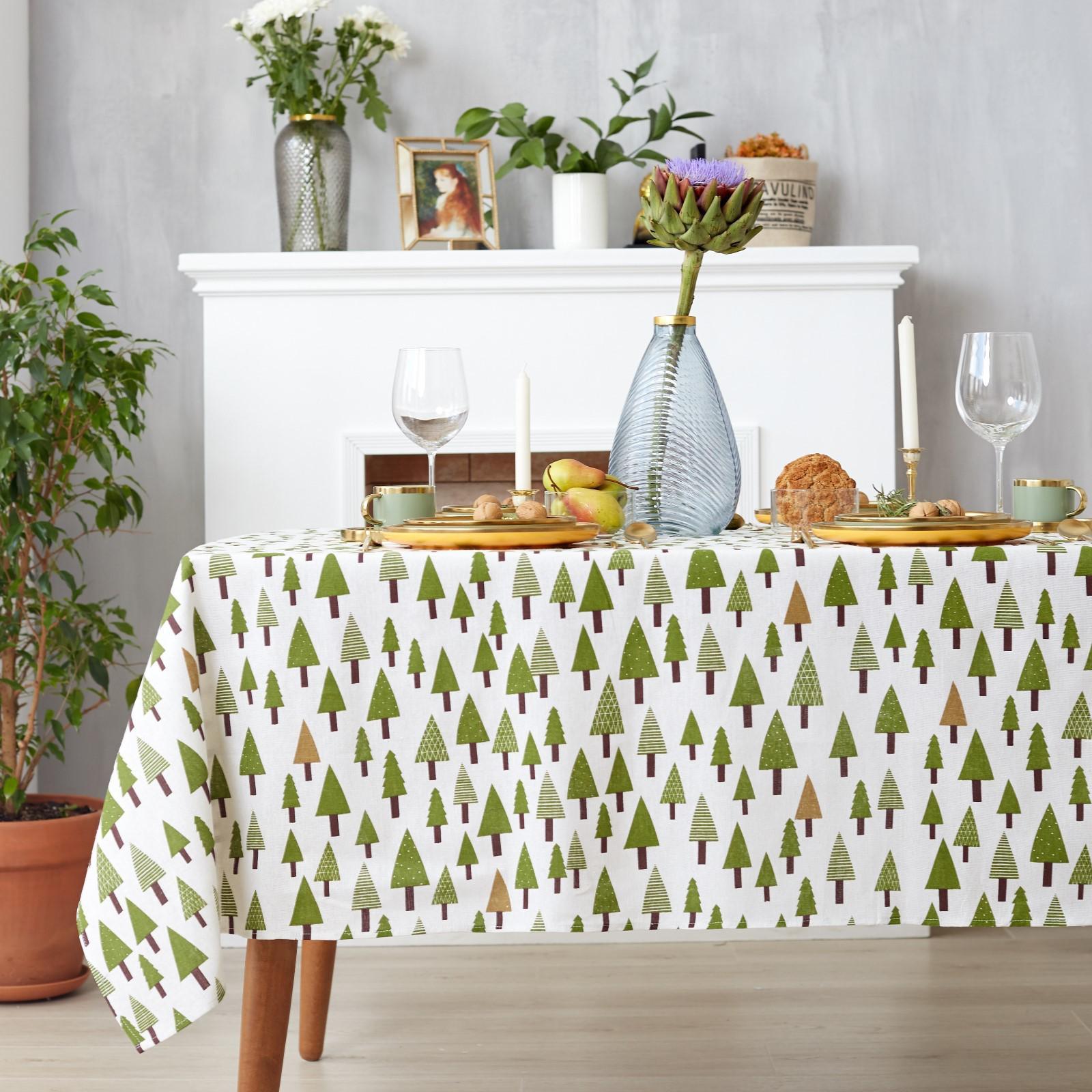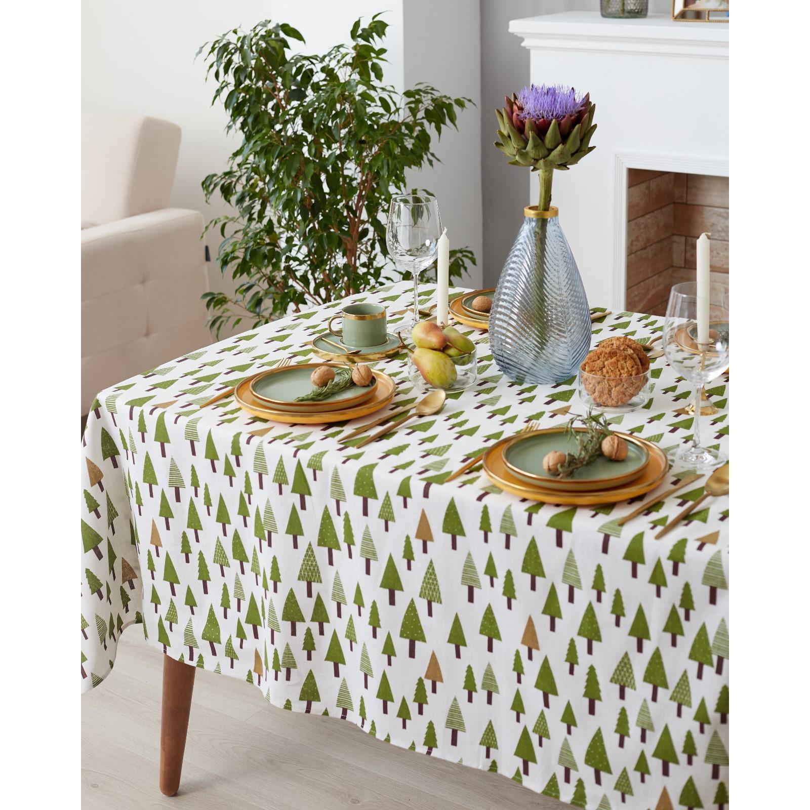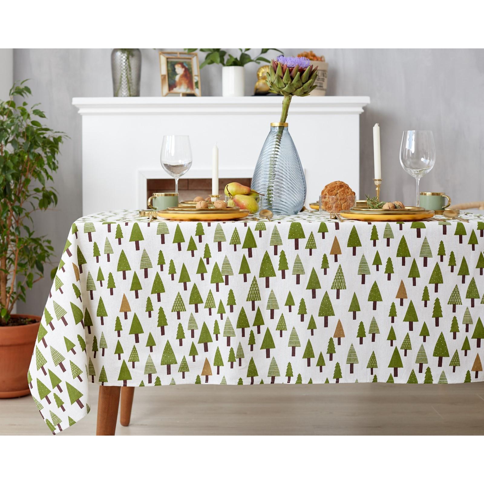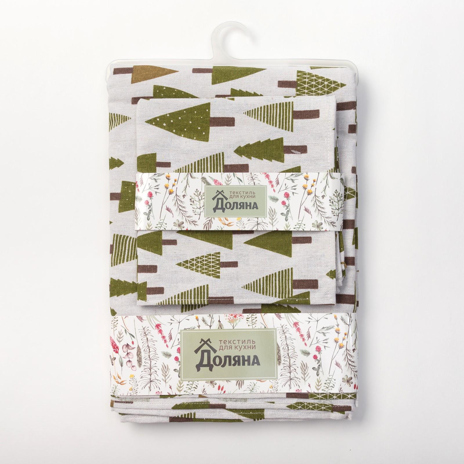 Набор Доляна скатерть 145х200см/салфетки 40х40см 4шт, Хвойный лес, 100%пэ, рогожка 200 гр/м 7531953