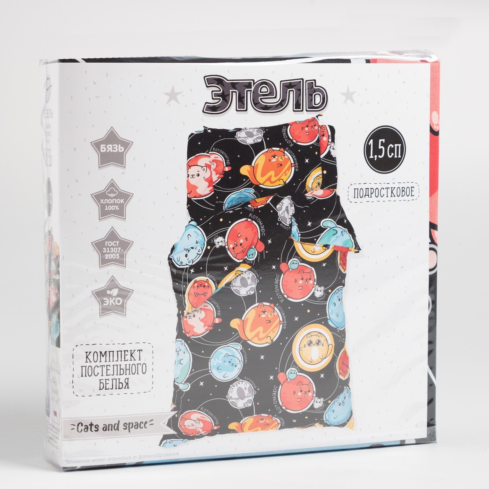 Постельное бельё Этель 1,5 сп "Cats and space", 143х215 см, 150х214 см, 50х70 см -1 шт, 100% хлопок, бязь 7582922