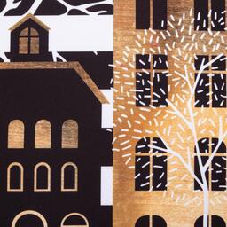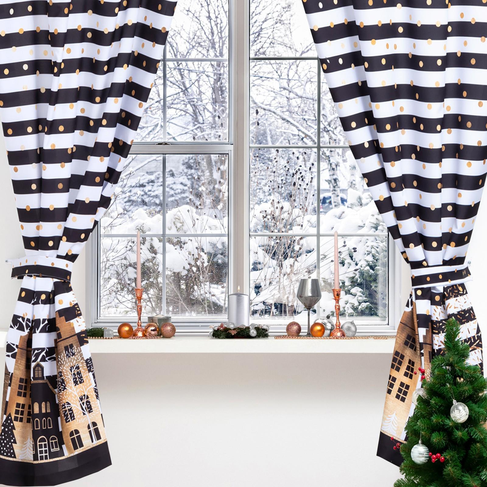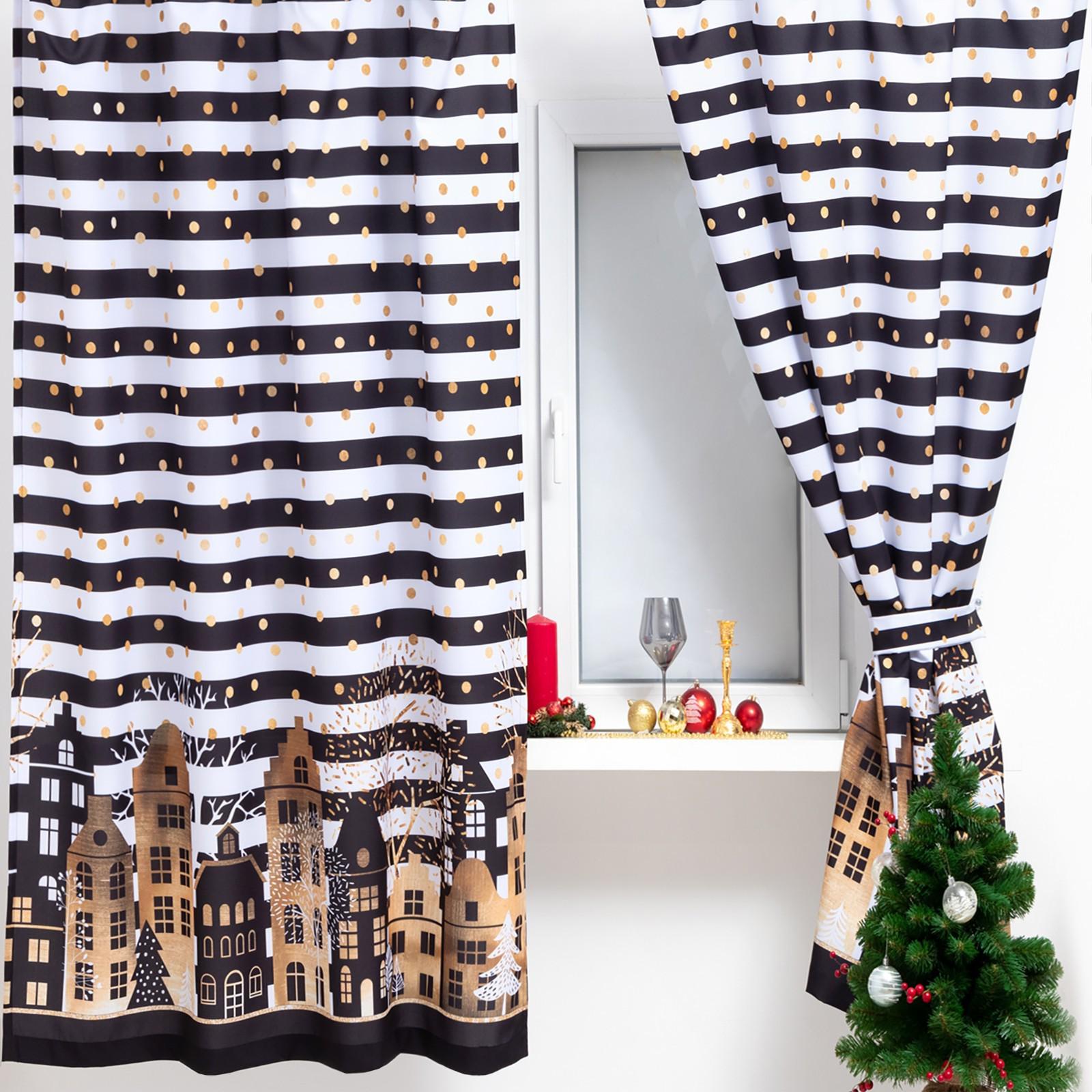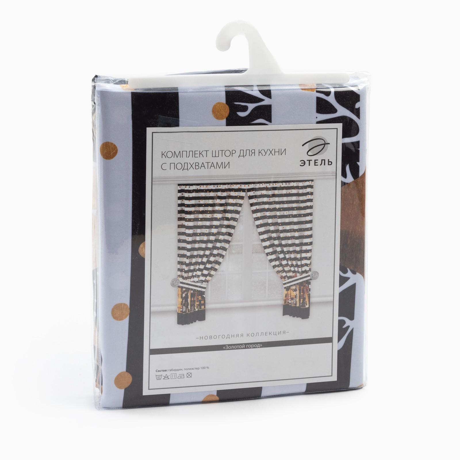 Новогодний комплект штор для кухни с подхватами "Золотой город" 145х180см-2 шт., габардин 5163063