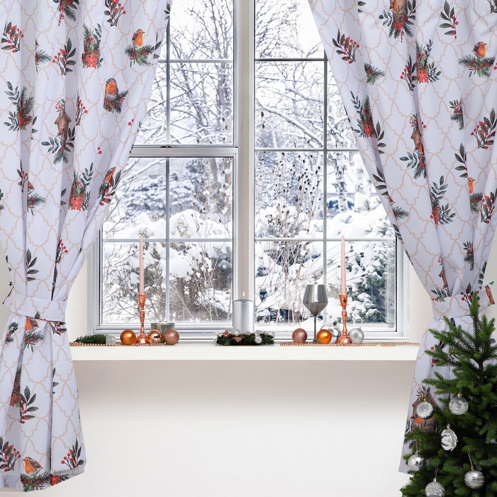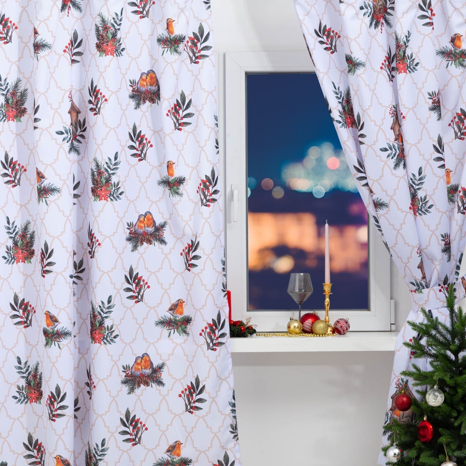 Новогодний комплект штор для кухни с подхватами "Beautiful birds" 145х180см-2 шт., габардин 7072272