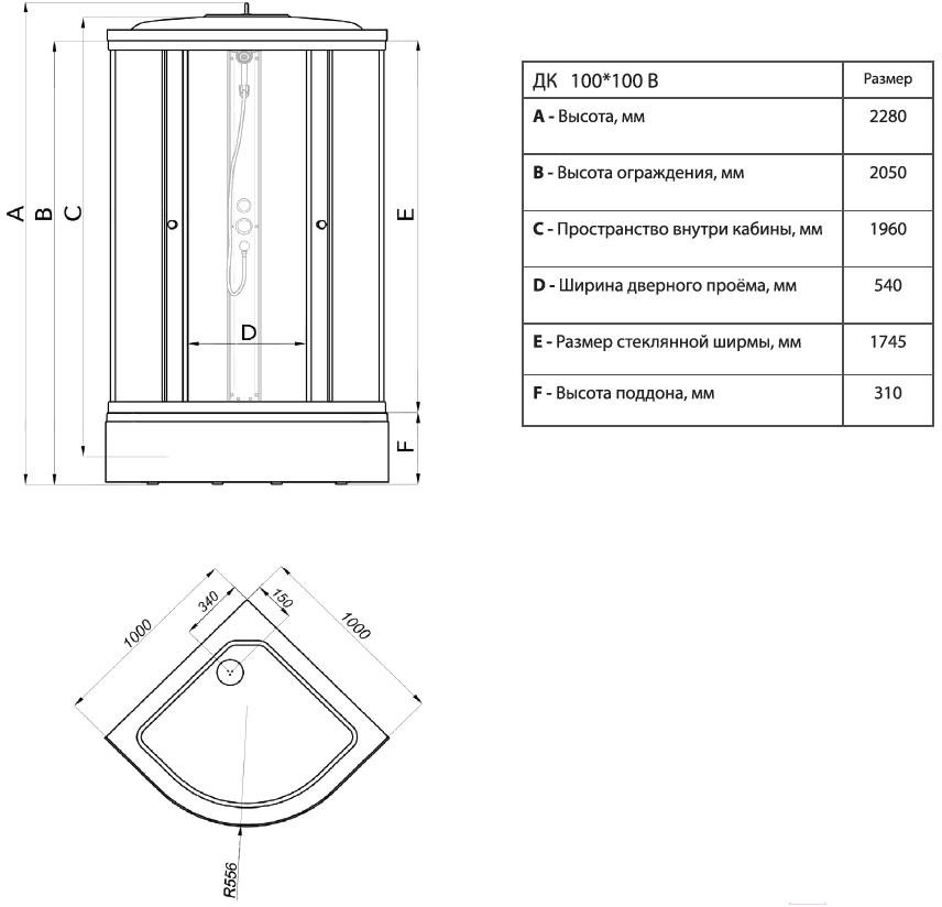 - Тип поддона высокий (ванна)