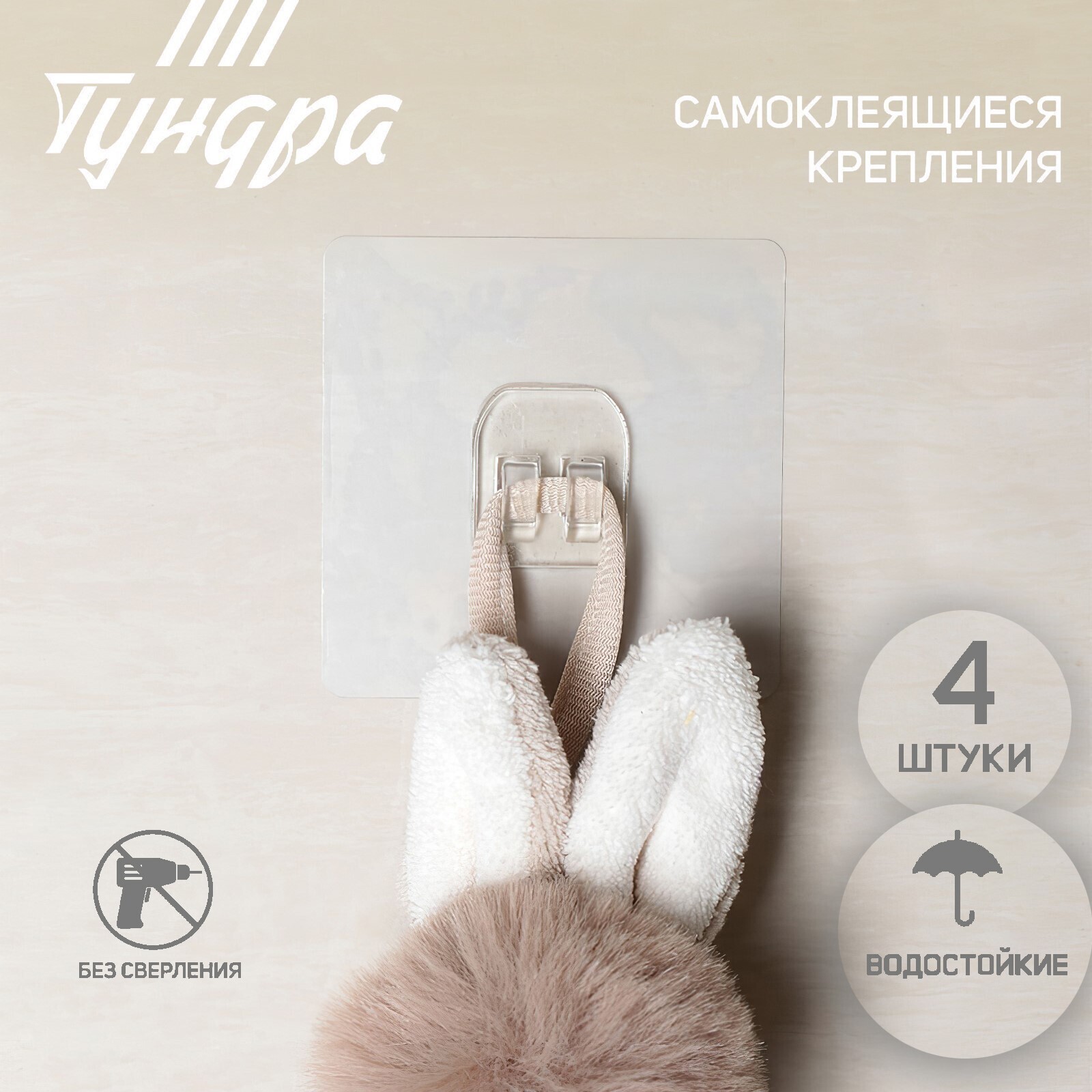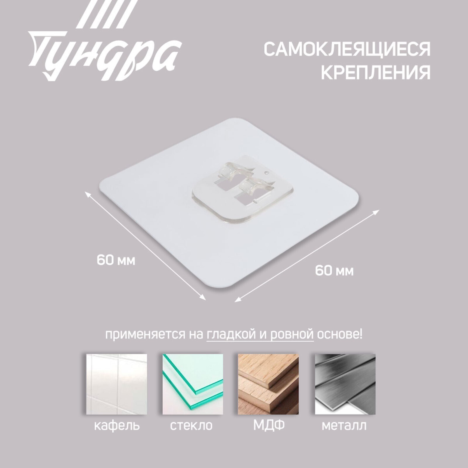 Держатель с клейкой поверхностью ТУНДРА, для крепления полок, прозрачный 9103448