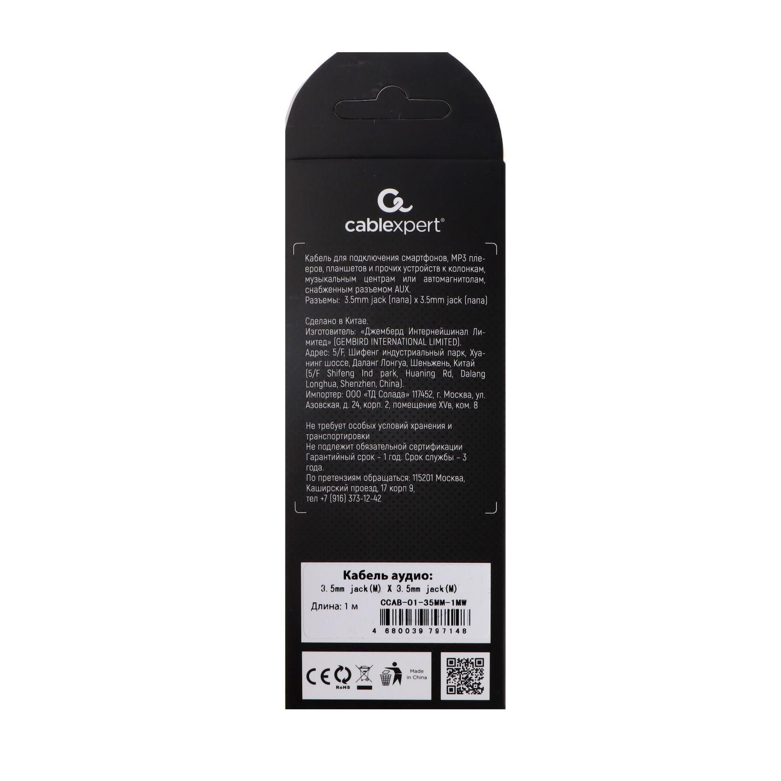 Кабель аудио AUX Cablexpert CCAB-01-35MM-1MB, Jack 3.5 мм(m)-Jack 3.5 мм(m), 1м, белый 9074370