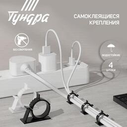 Держатель самоклеящийся для проводов ТУНДРА krep, d=2, 6 см х 2 см х 4 см, белый, 4 шт. 7514367