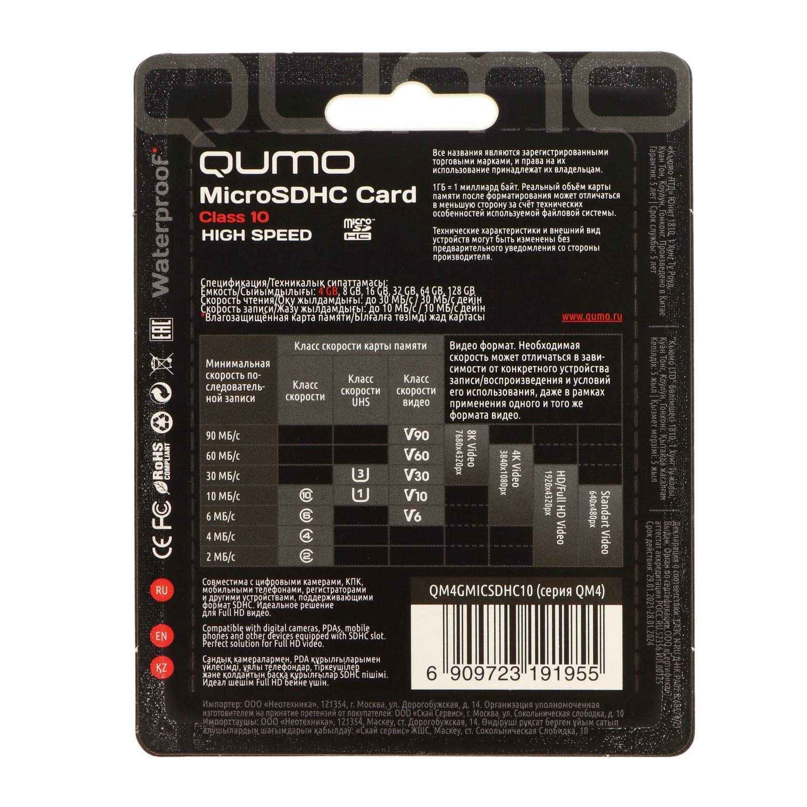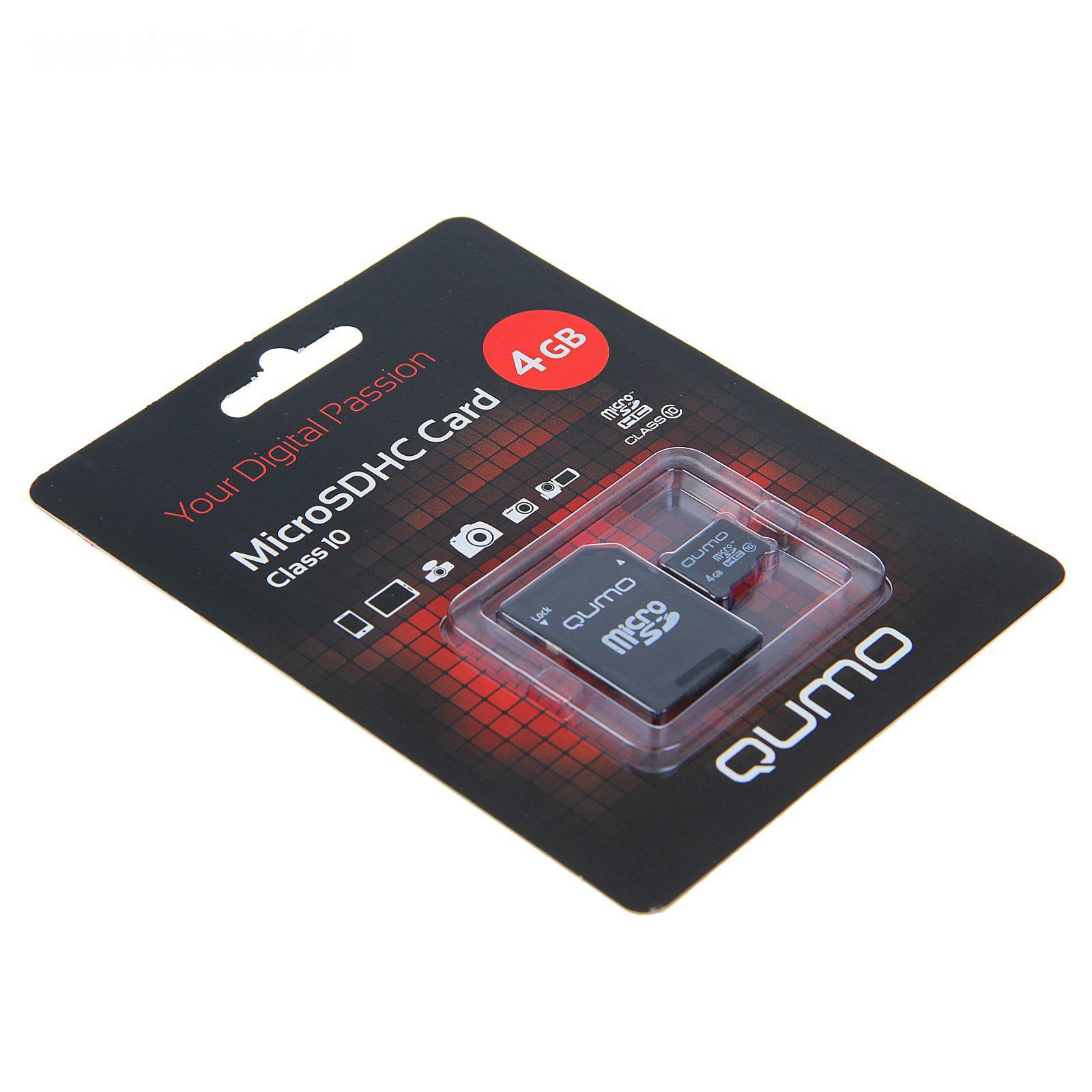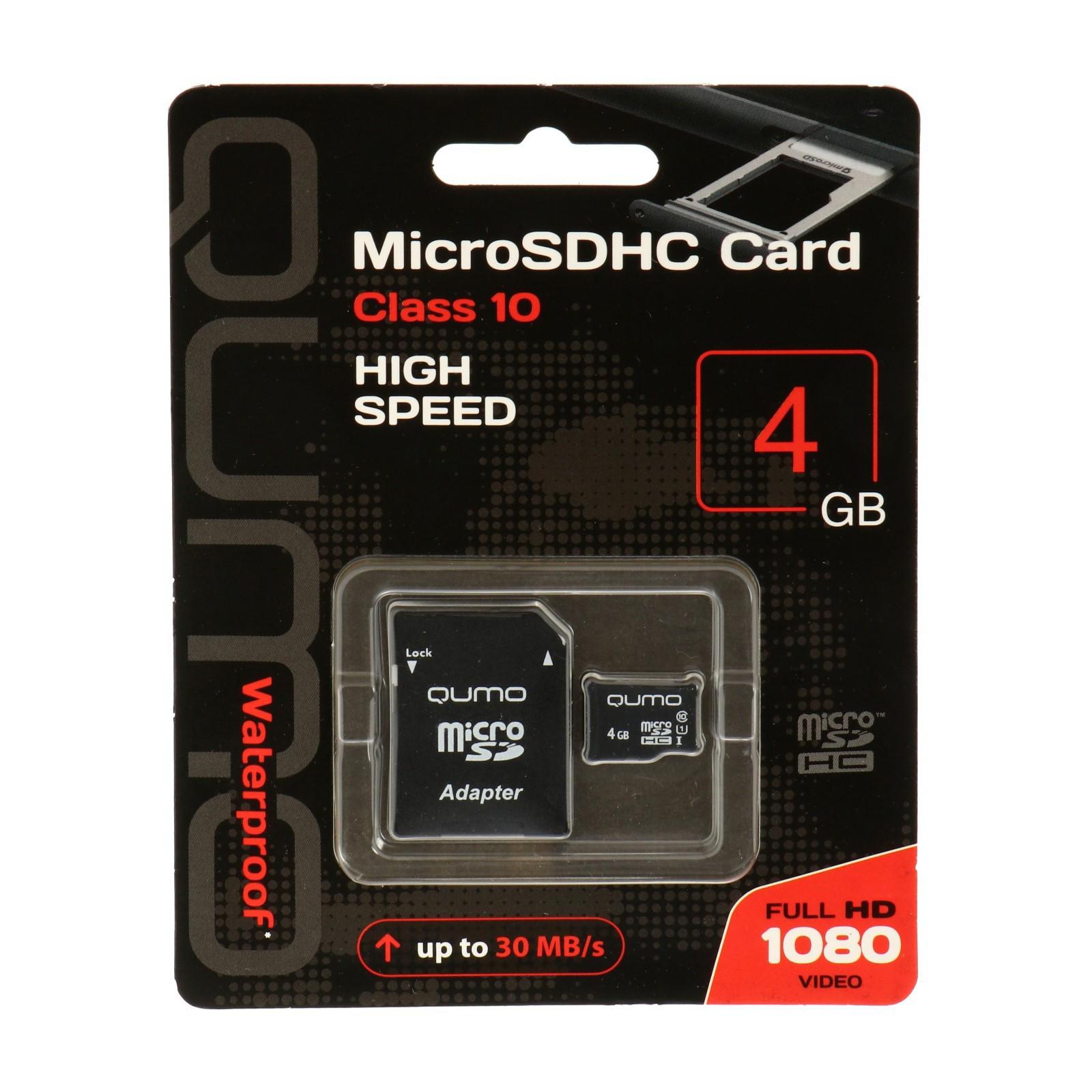Карта памяти Qumo microSD, 4 Гб, SDHC, класс 10, с адаптером SD 1272264