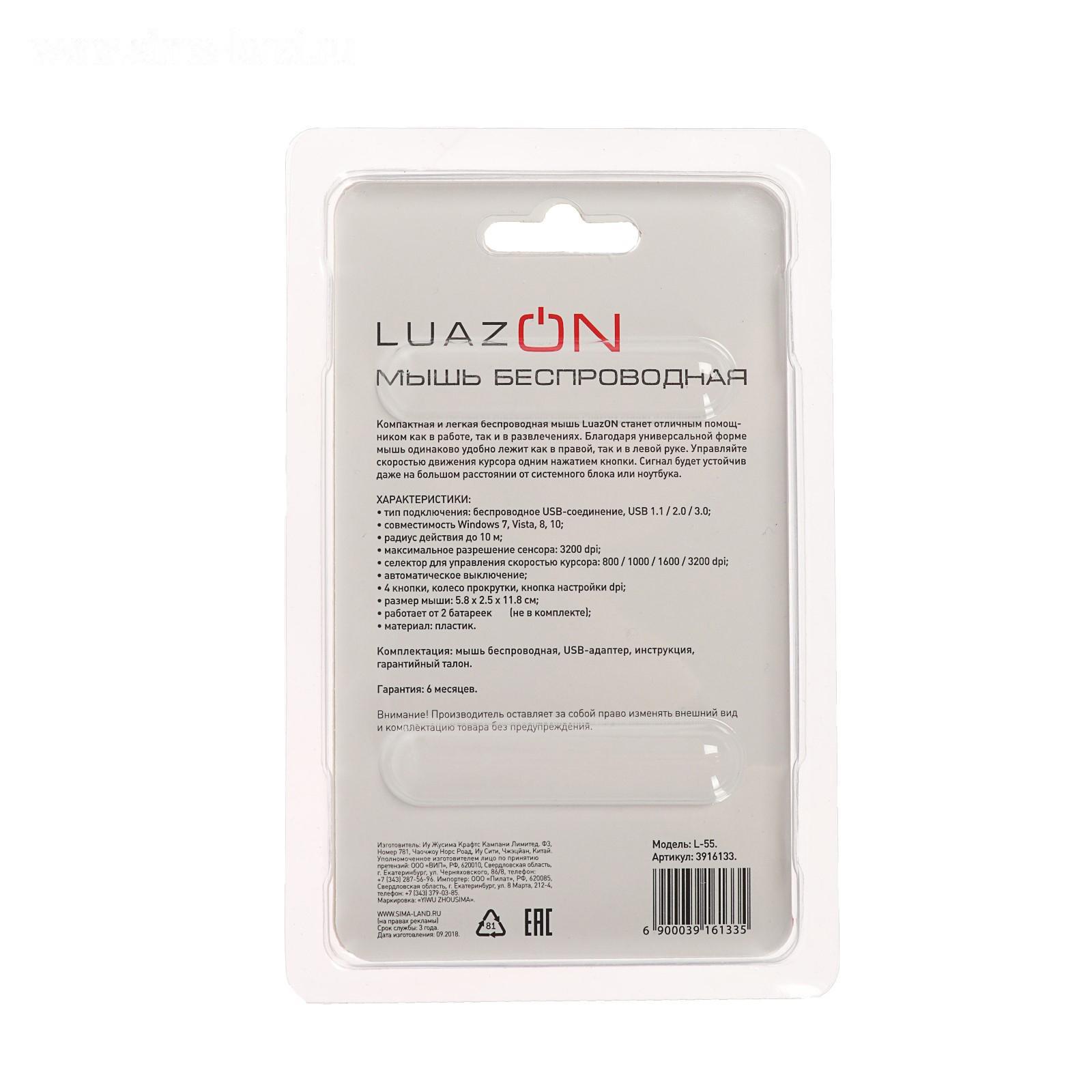 Мышь LuazON MB-1.1, беспроводная, оптическая, 3200 dpi, от 2 батареек, USB, чёрная 3916133