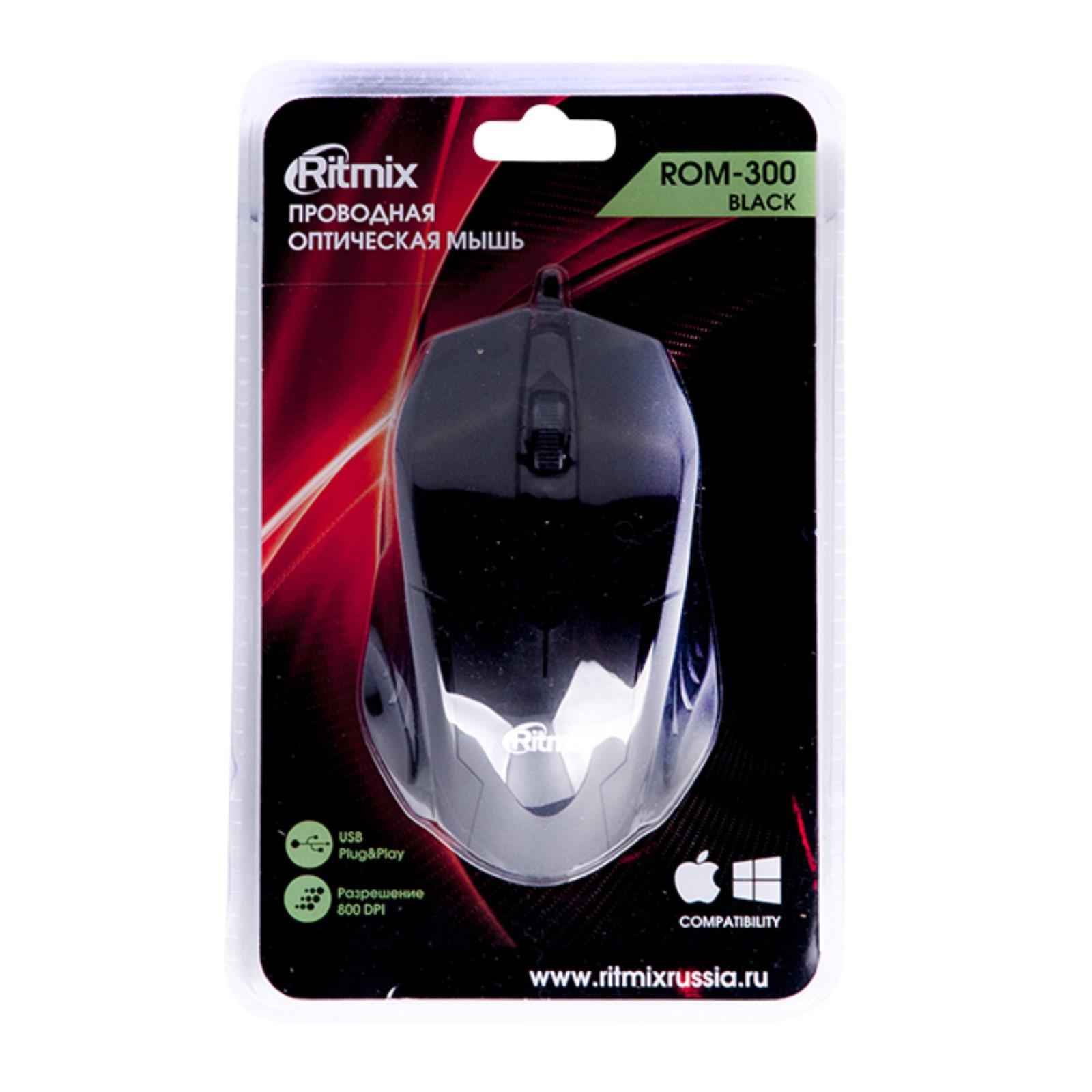 Мышь RITMIX ROM-300 Black, проводная, оптическая, 800 dpi, USB, чёрная 9085333