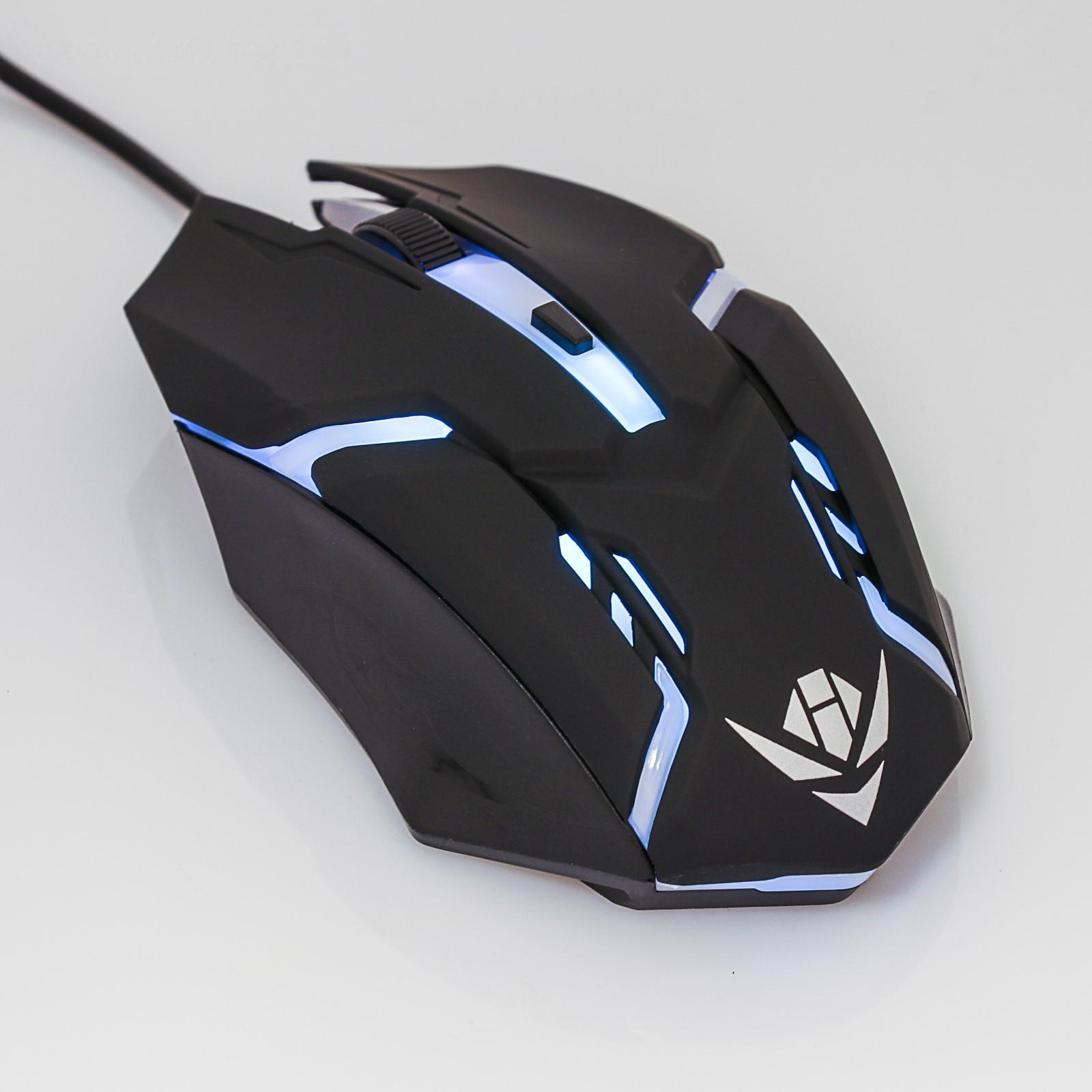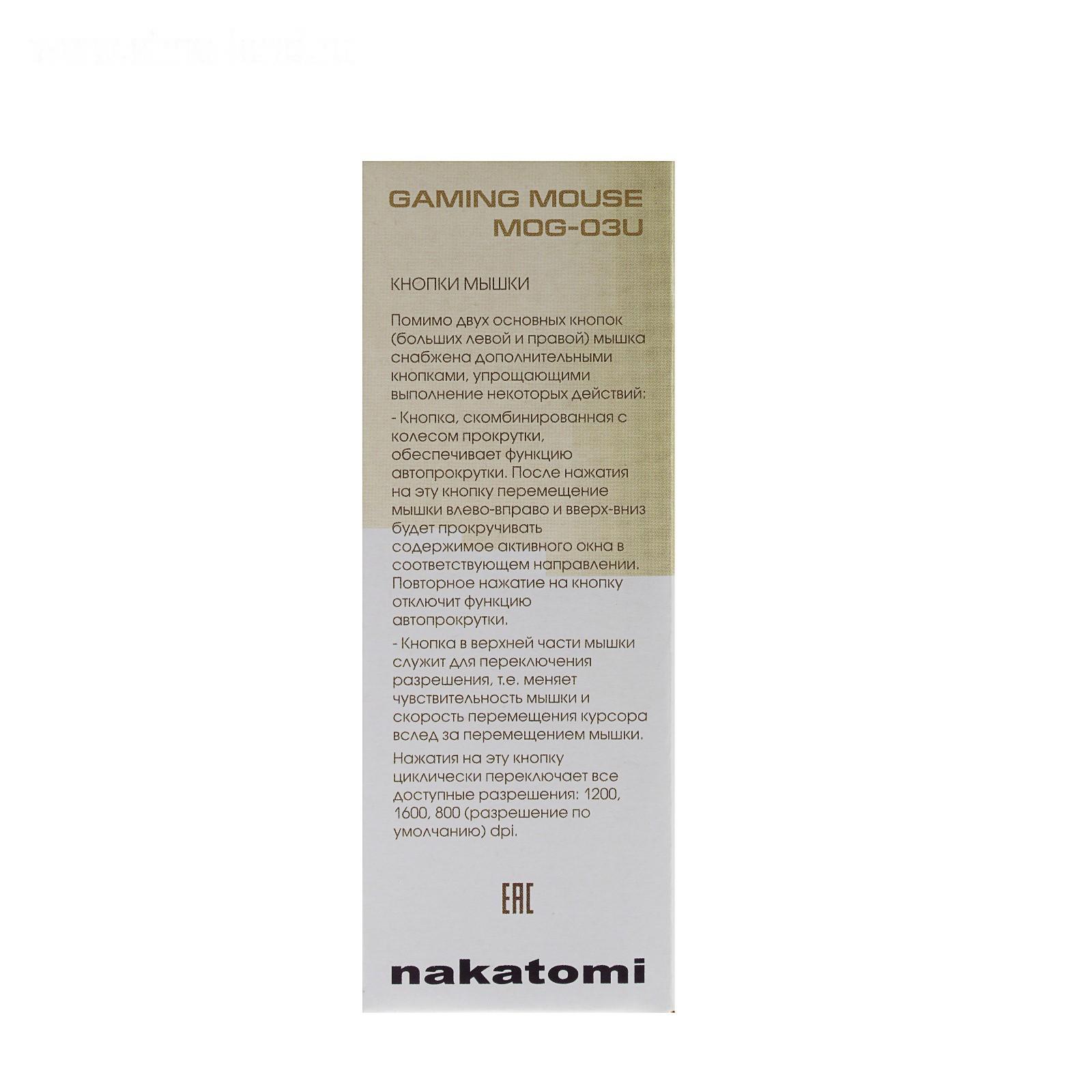 Мышь Nakatomi MOG-03U Gaming, игровая, проводная, 4 кнопки, подсветка, 1600 dpi, USB, чёрная 4038921
