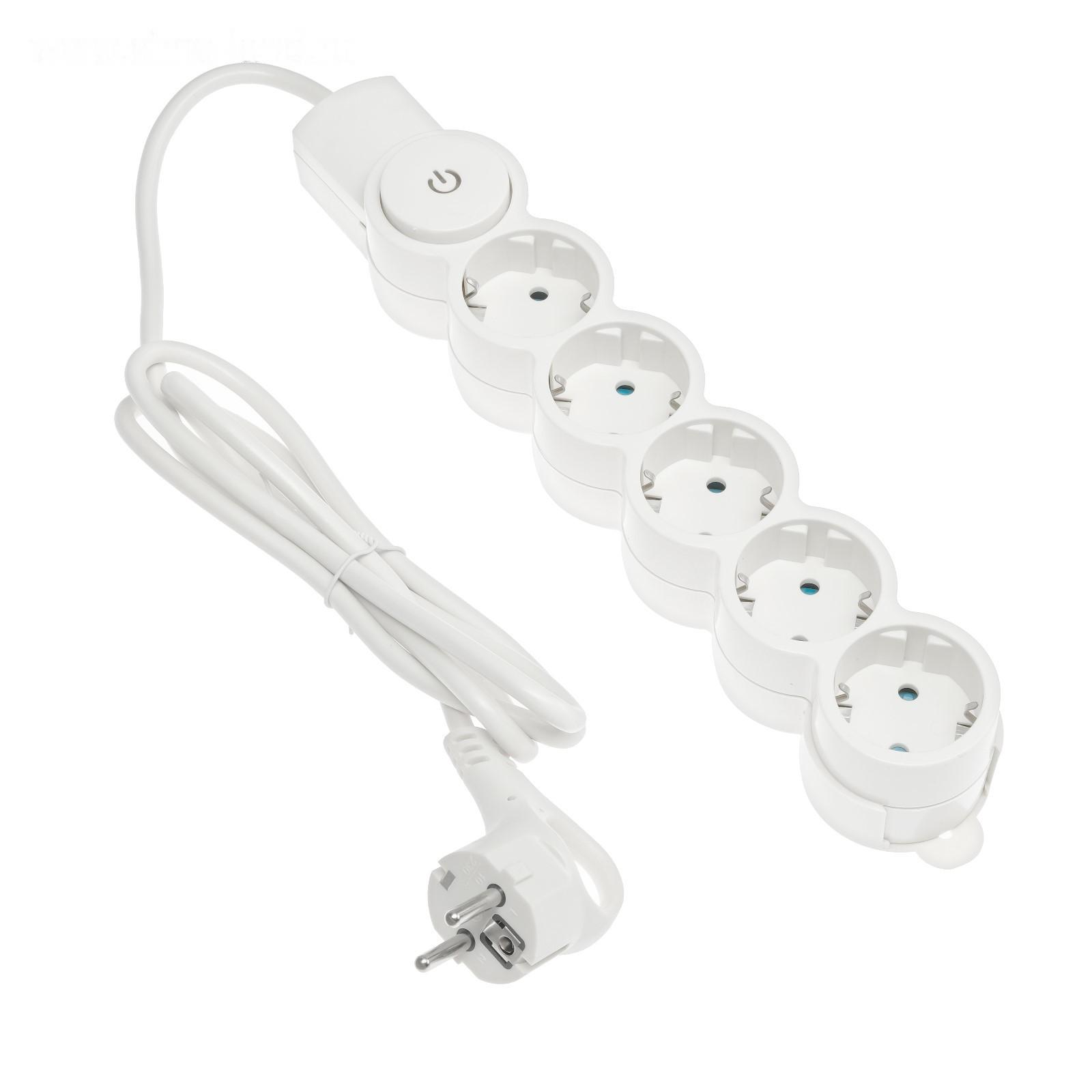 Универсальный пятиместный бытовой удлинитель предназначен для подключения одновременно нескольких электроприборов. Устройство снизит и равномерно распределит нагрузку с одной розетки.