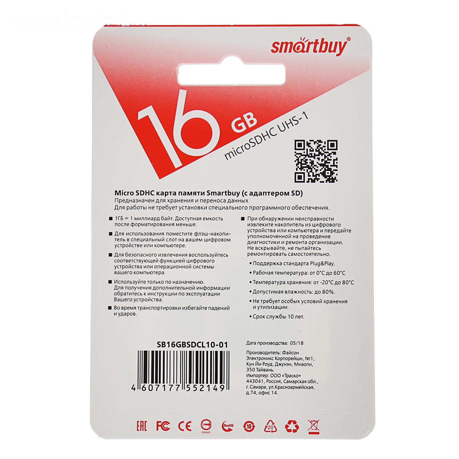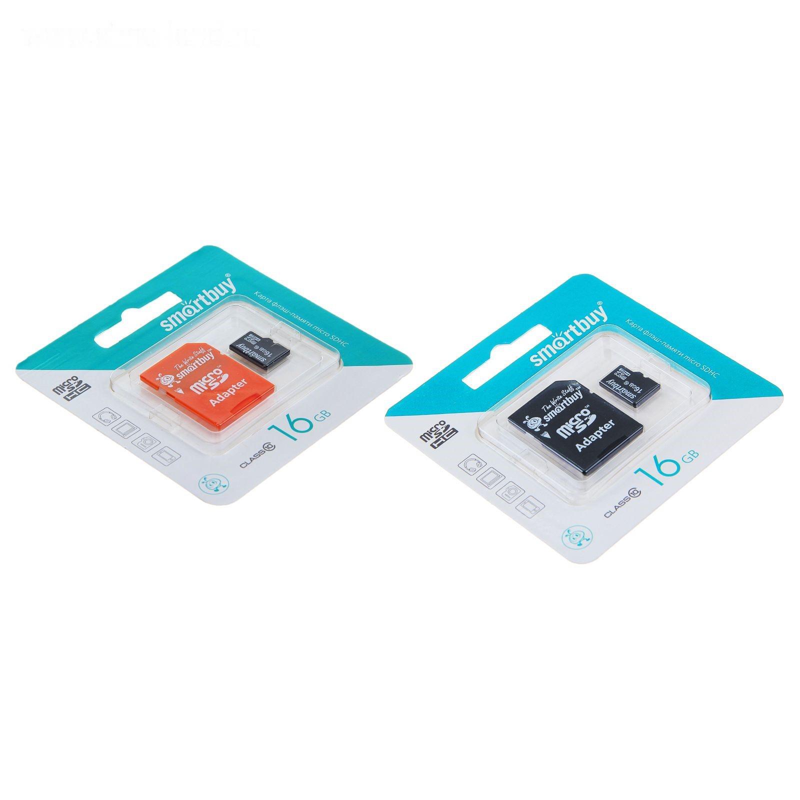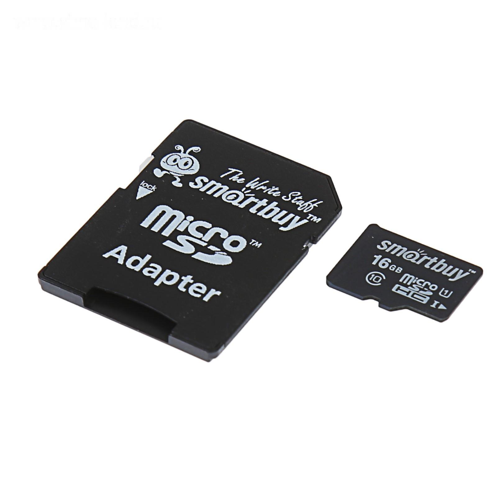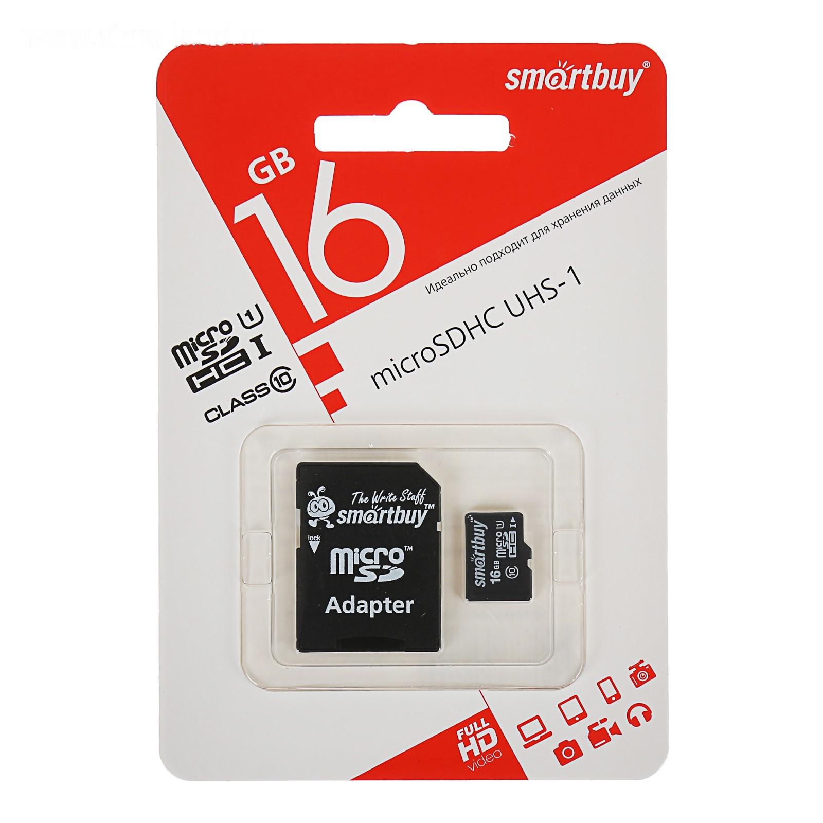 Карта памяти Smartbuy microSD, 16 Гб, SDHC, класс 10, с адаптером SD 1197267