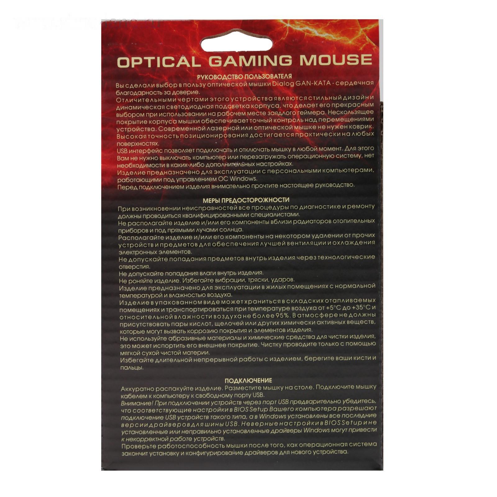 Мышь Dialog MGK-10U Gan-Kata, игровая, проводная, оптическая, 2400 dpi, USB, чёрная 2095383