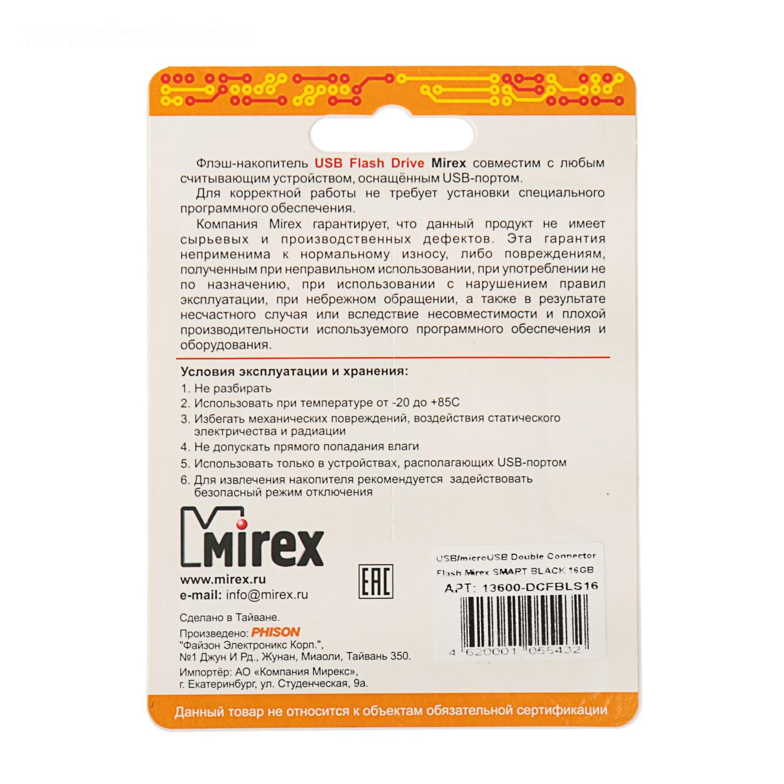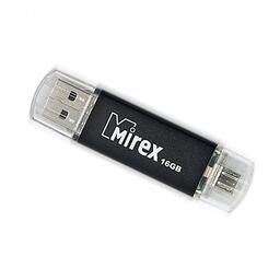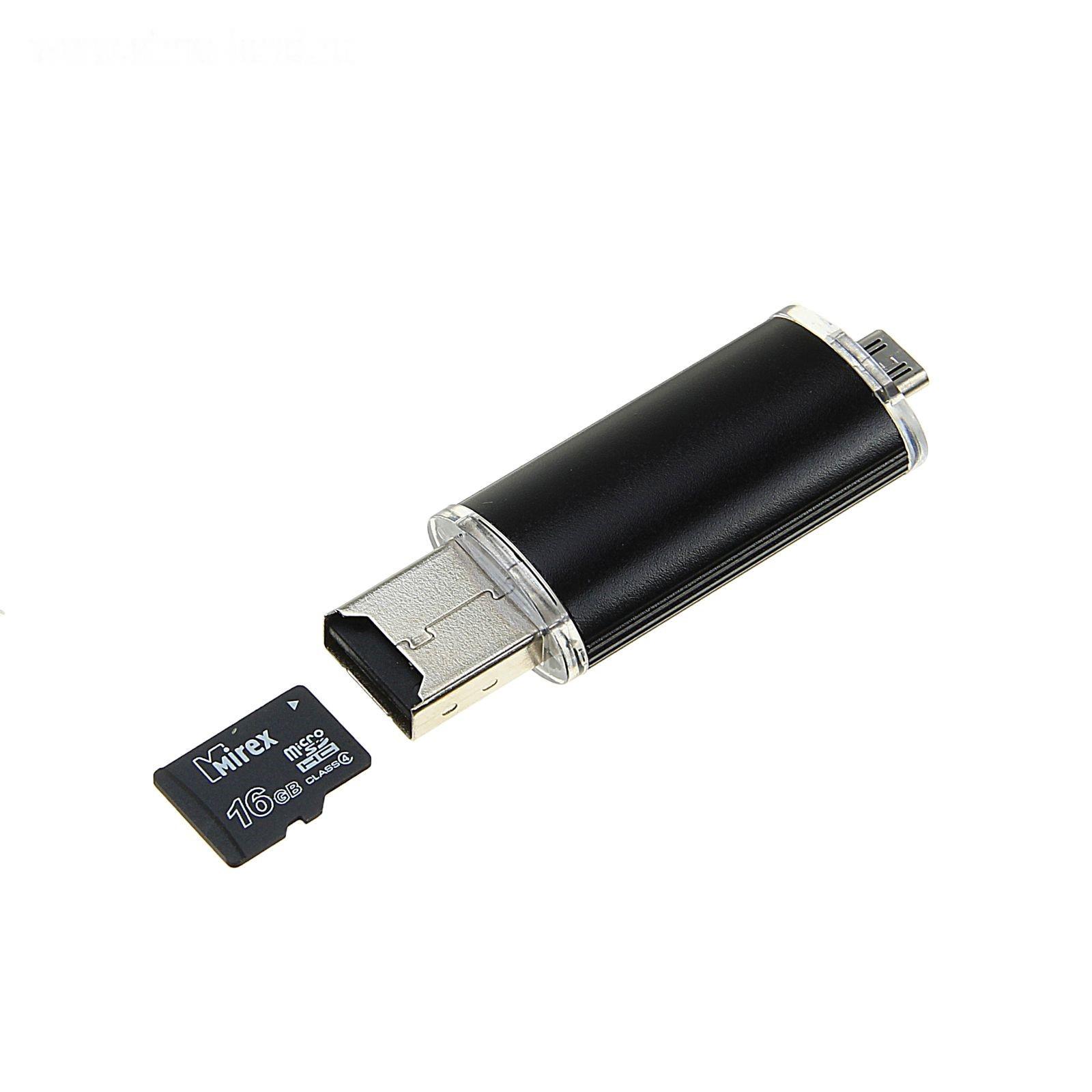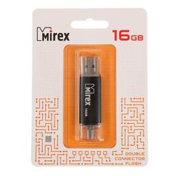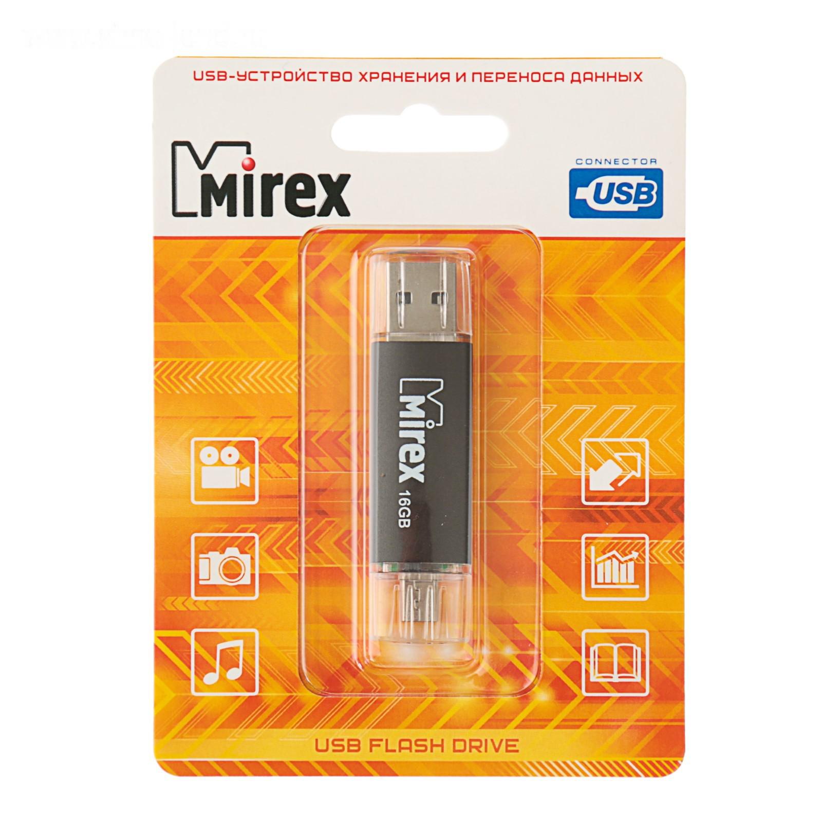 Флешка Mirex SMART BLACK, 16 Гб, USB2.0, USB/microUSB, чт до 25 Мб/с, зап до 15 Мб/с, черная 1803032