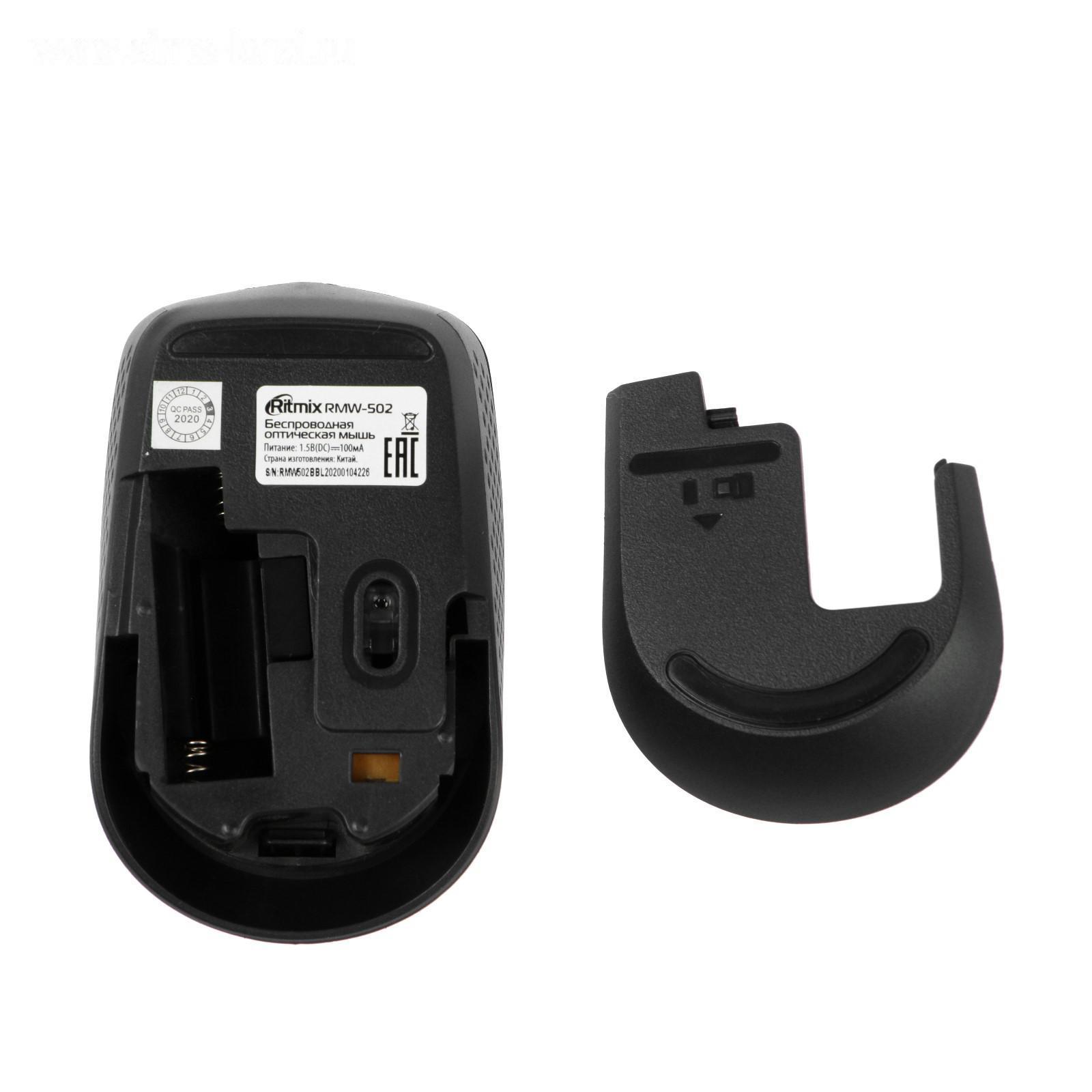 Мышь Ritmix RMW-502, беспроводная, оптическая, 1200 dpi, 2xAAA(не в компл), USB, синяя 5240011
