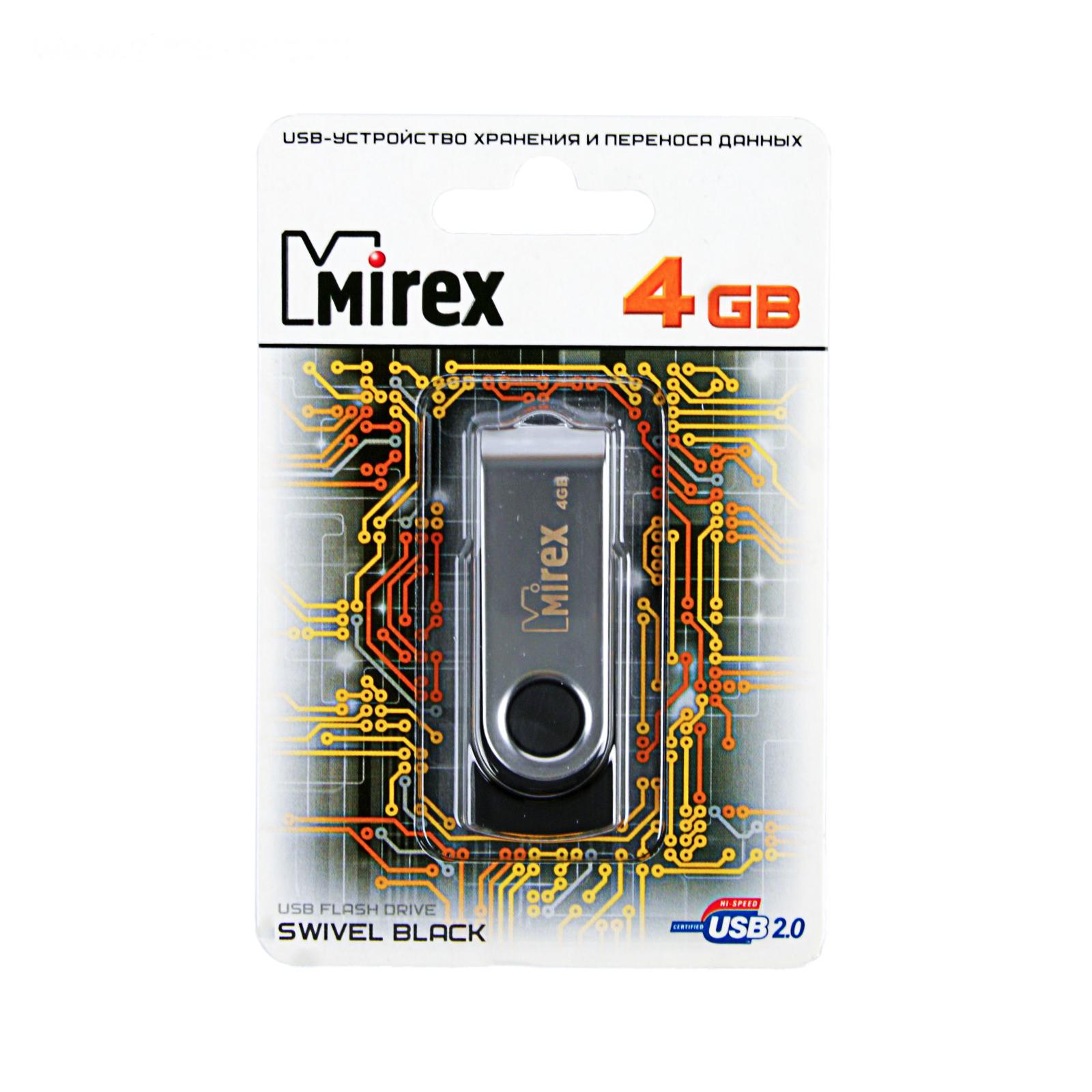 Флешка Mirex SWIVEL BLACK, 4 Гб, USB2.0, чт до 25 Мб/с, зап до 15 Мб/с, черная 2891003