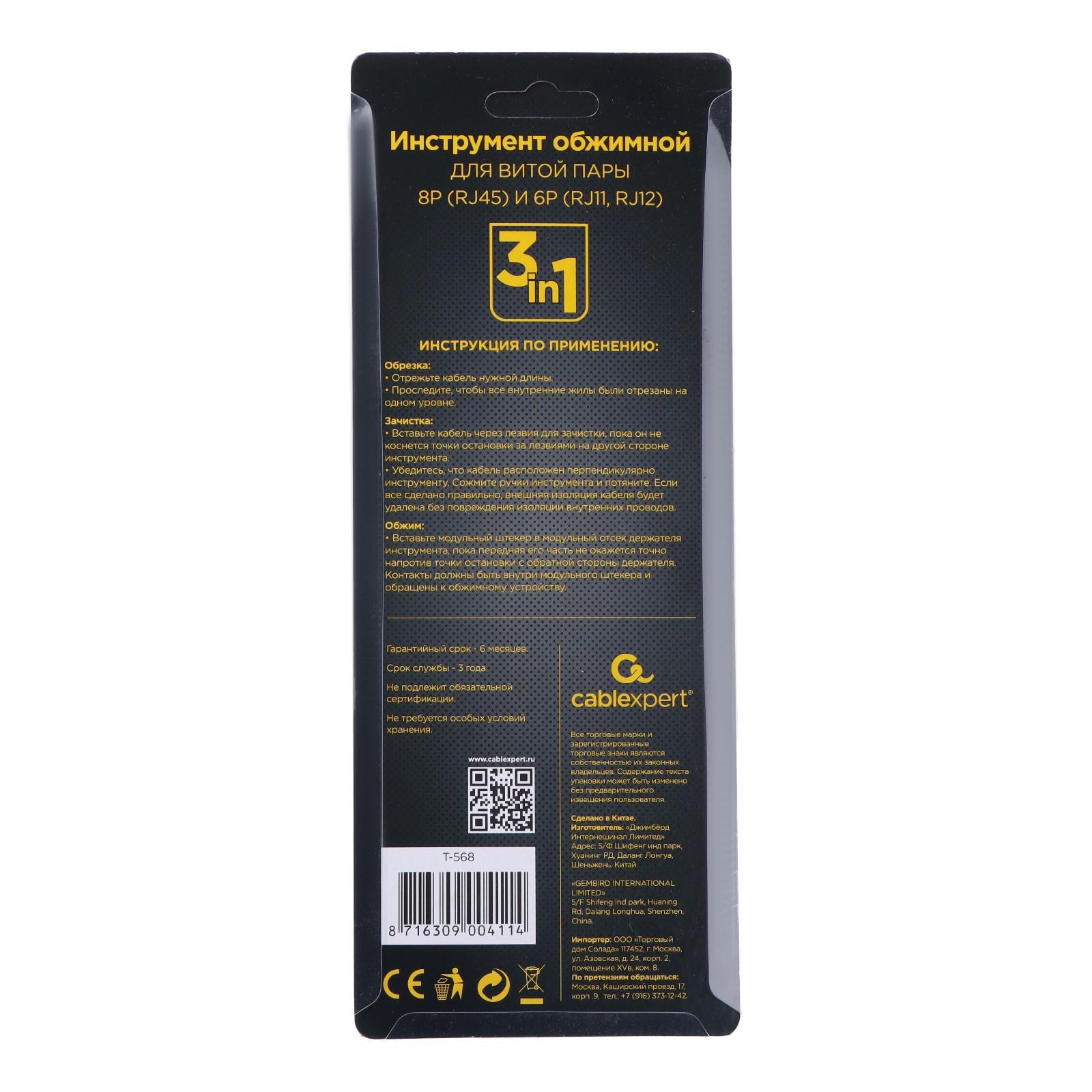 Клещи для обжима и разделки кабелей Cablexpert T-568, для RJ45, RJ12, RJ14, RJ11 9235017