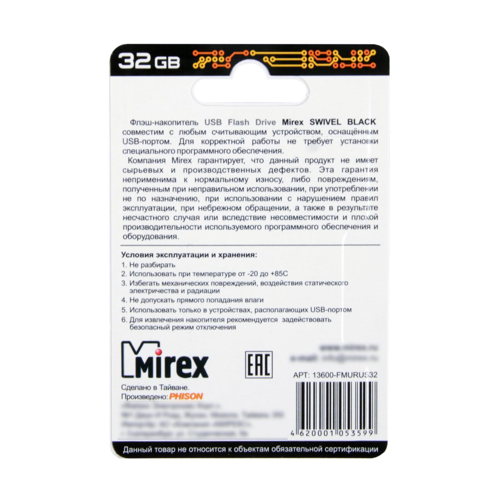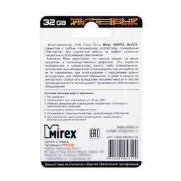 Флешка Mirex SWIVEL BLACK, 32 Гб, USB2.0, чт до 25 Мб/с, зап до 15 Мб/с, черная 2891052