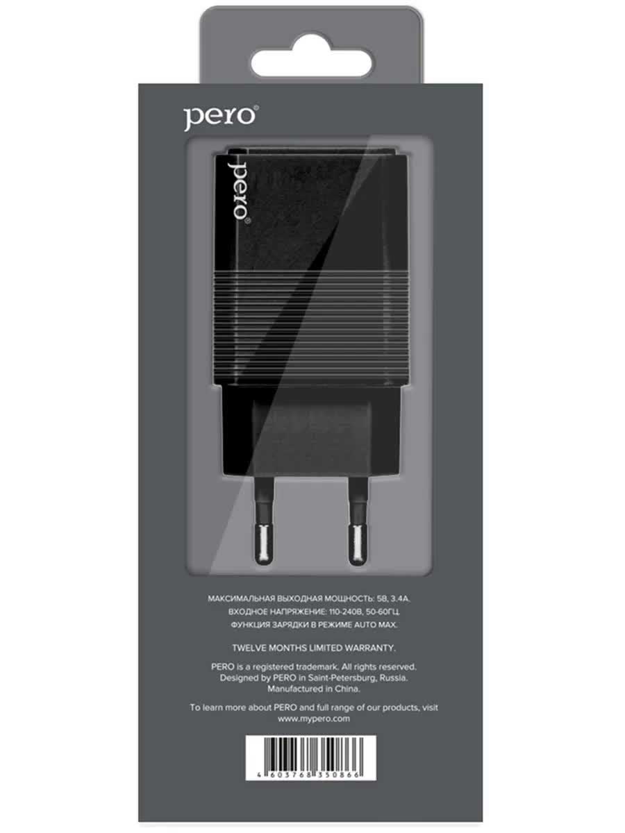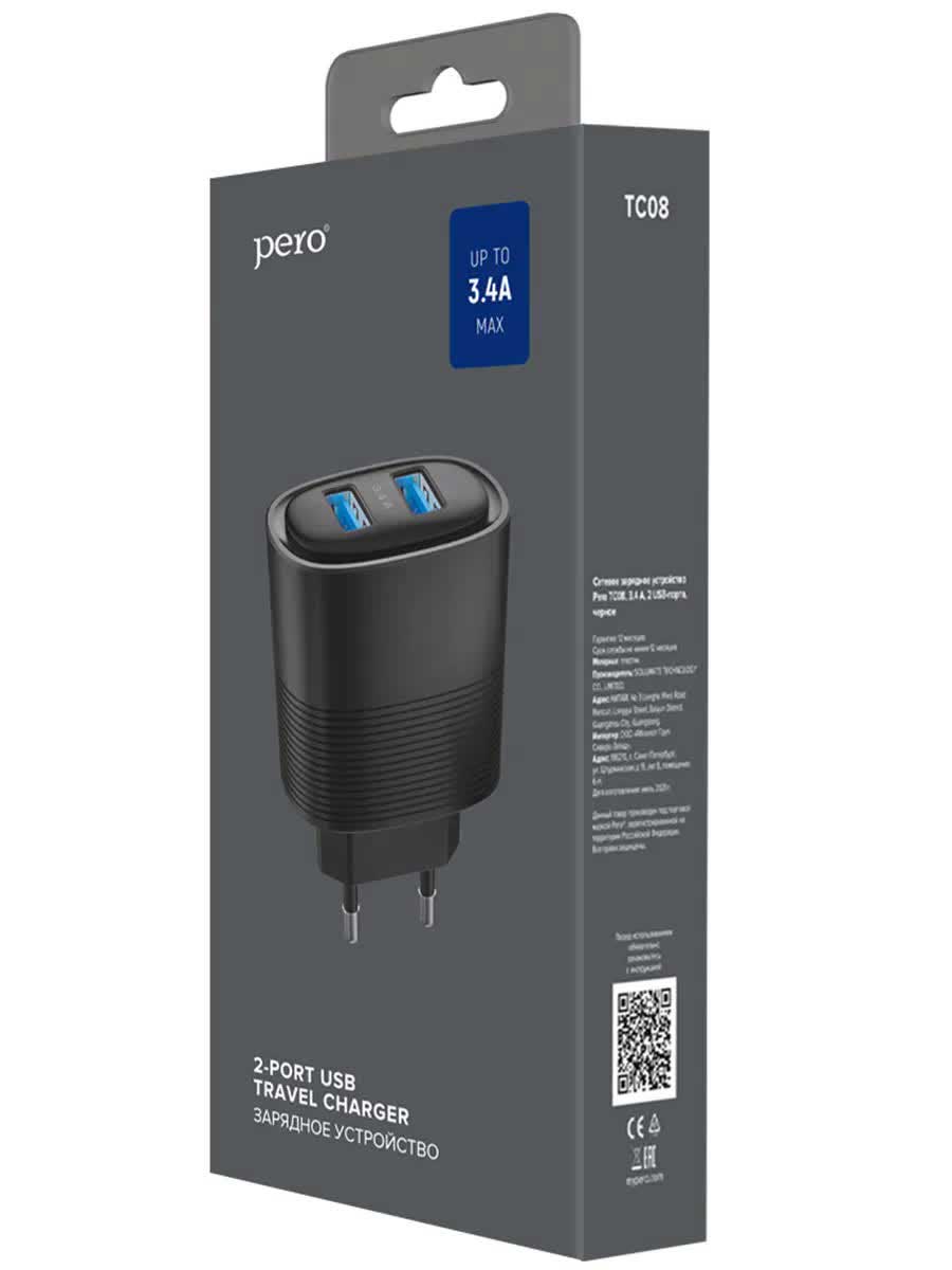 Бесплатная доставка -55% В наличии 490 руб. 1 090 руб. Сетевое зарядное устройство PERO TC08 AUTO MAX 2USB 3.4А черный