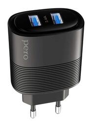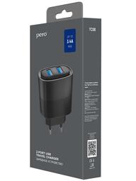 Описание товара Сетевое зарядное устройство PERO TC08 AUTO MAX 2USB 3.4А черный