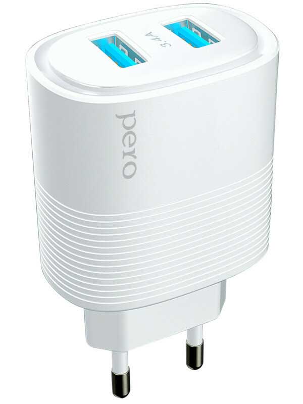 Описание товара Сетевое зарядное устройство PERO TC08 AUTO MAX 2USB 3.4А белый