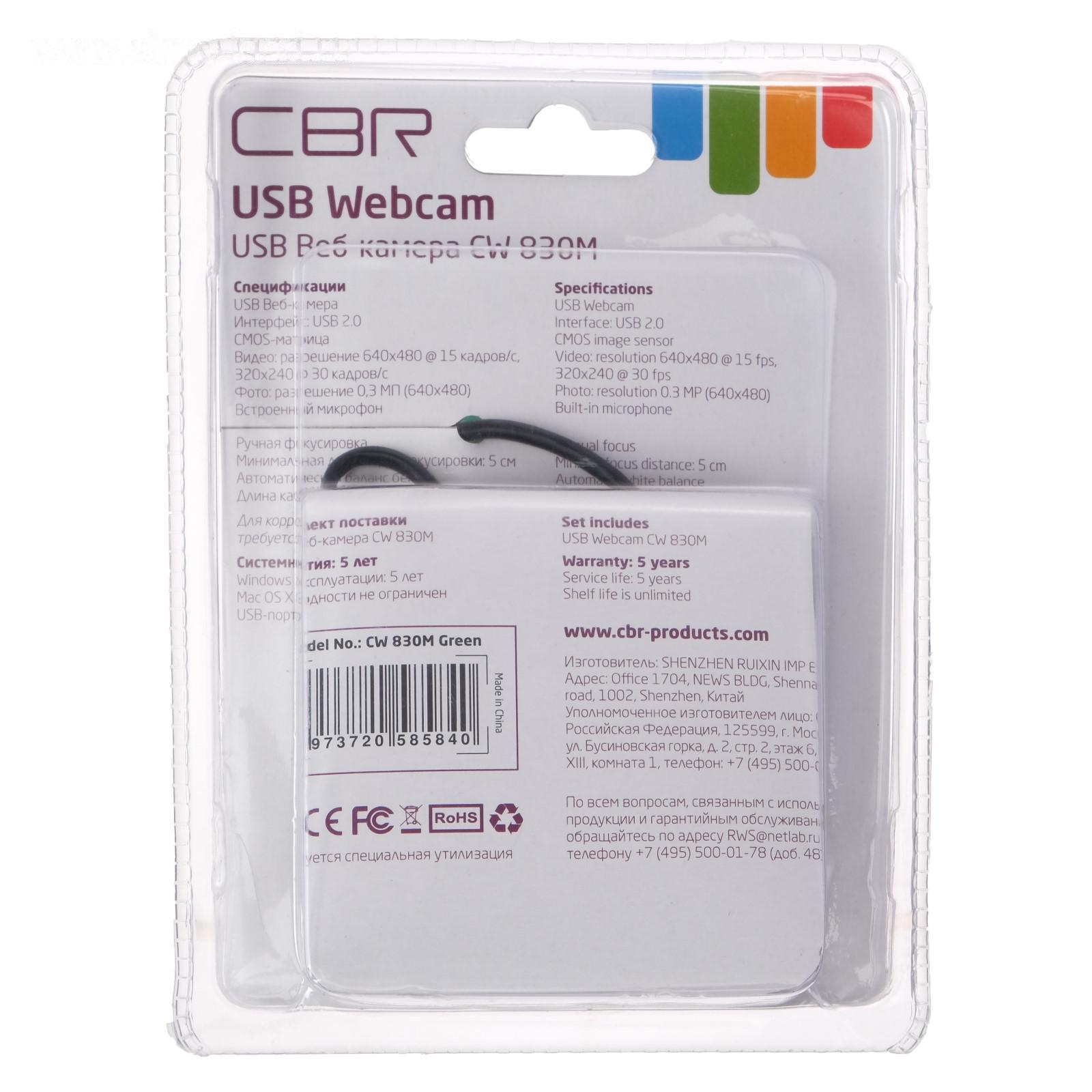 Веб-камера CBR CW 830M Green, 0.3 МП, 640х480, USB 2.0, микрофон, зеленая 5392436