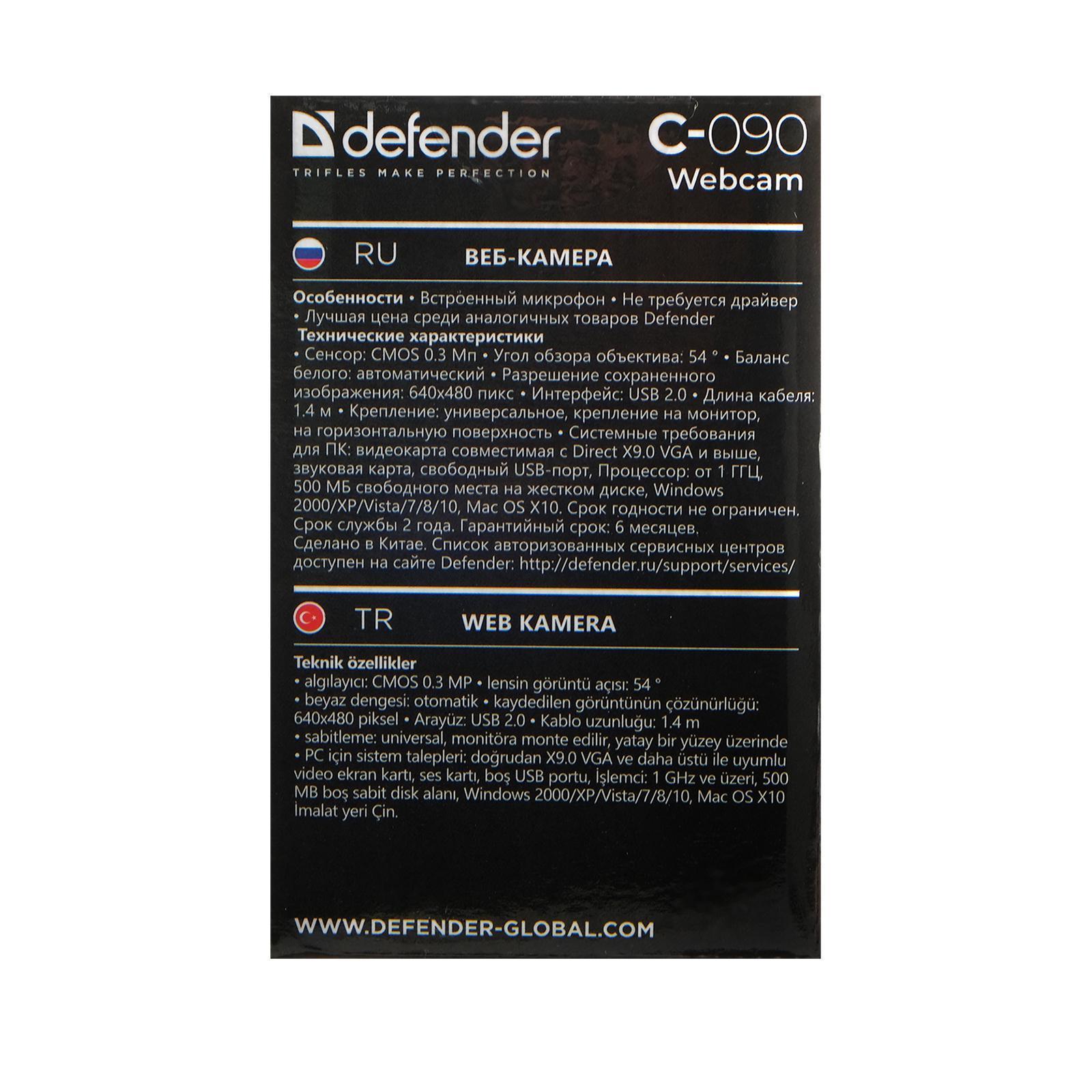 Веб-камера Defender C-090, 0.3 Мп, 640x480, микрофон, черная 1228410