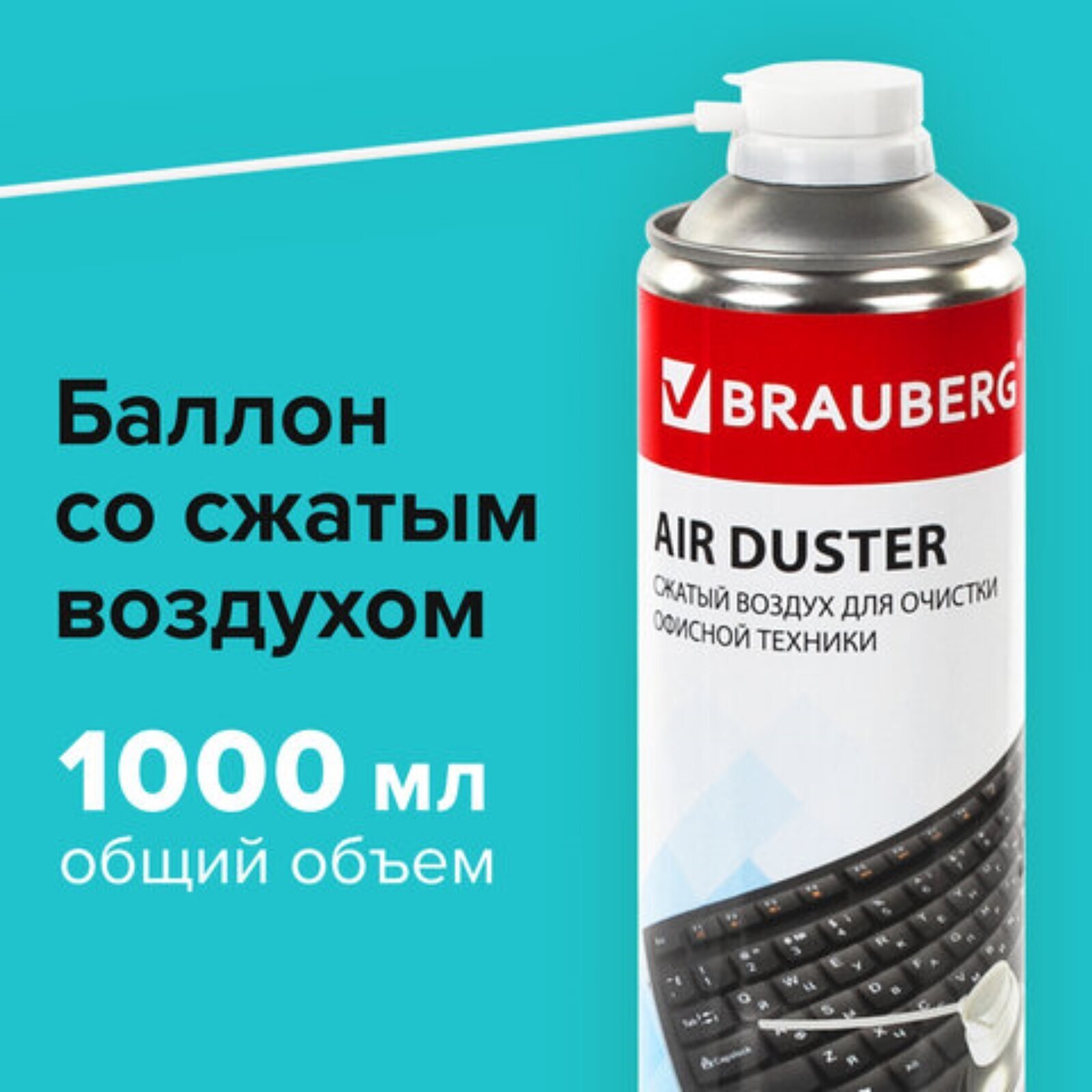 Баллон д/очистки офисной техники, BRAUBERG, со сжатым воздухом, 1000 мл, 513317 5446624