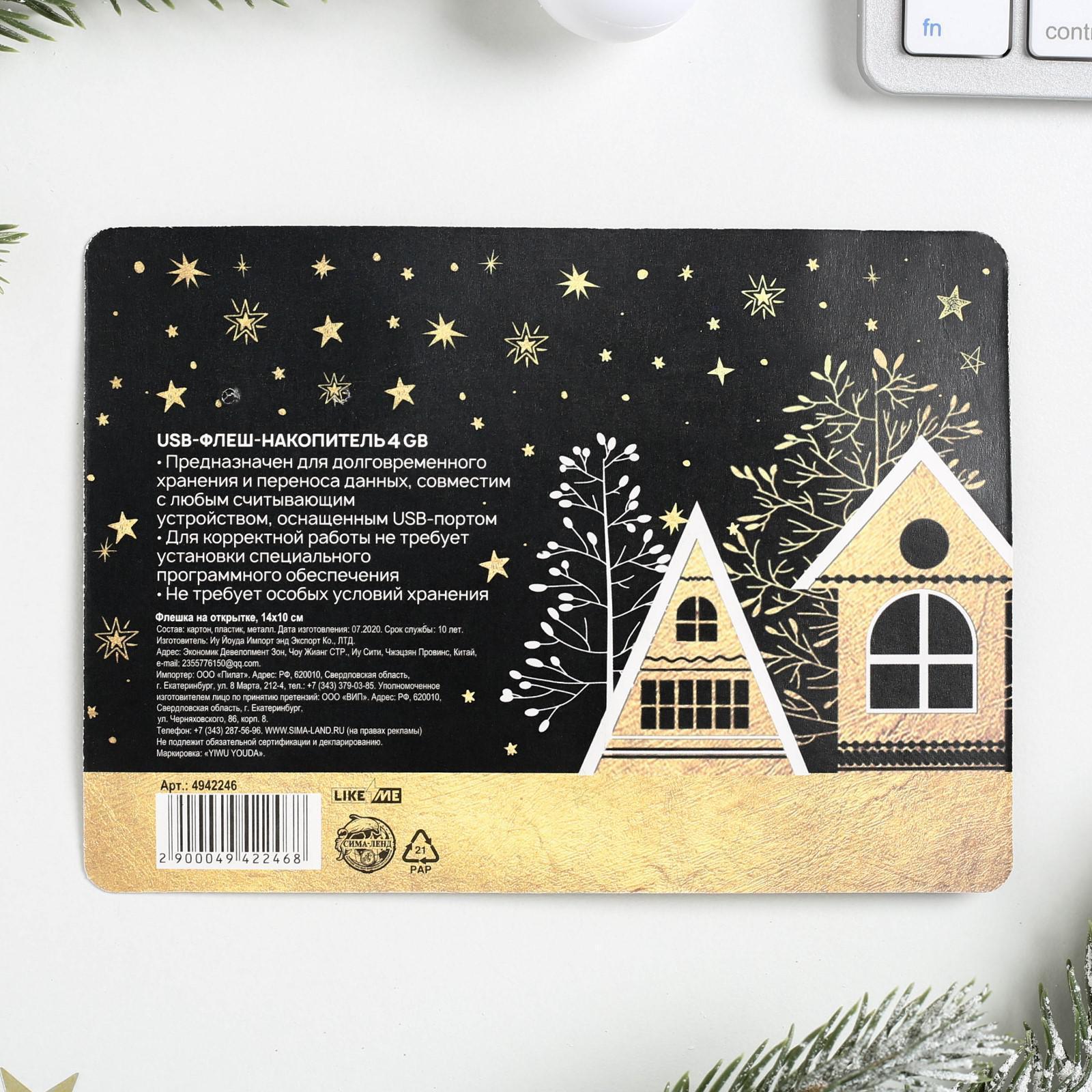 Флешка на открытке «С Новым годом», 4 Гб, чёрная 4942246