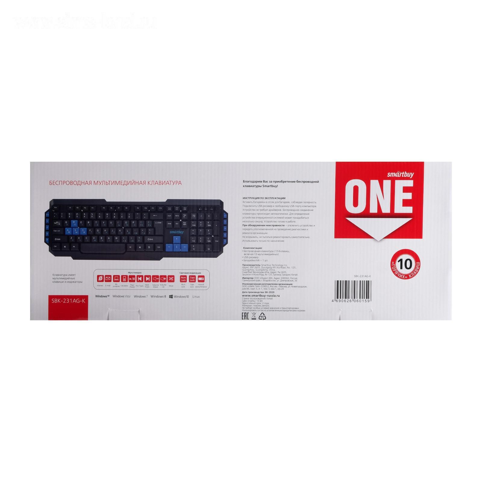 Клавиатура Smartbuy ONE 231, беспроводная, мембранная, 114 клавиш, USB, черная 5471269