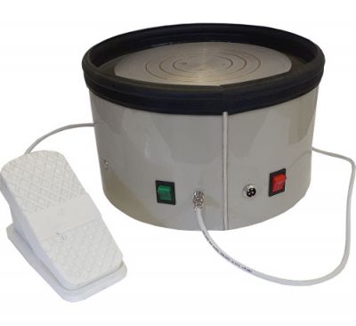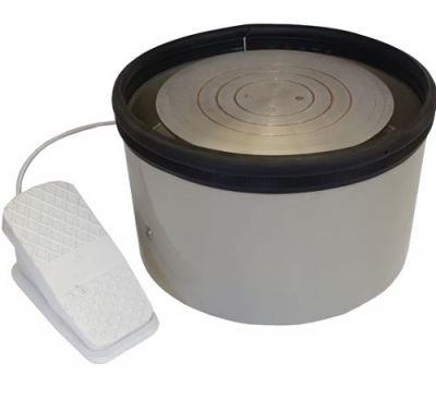 Данная модель гончарного круга удобна для транспортировки. Встроенный аккумулятор обеспечивает до двух часов работы без подзарядки. Мощность двигателя позволяет отцентровать до 3 кг глины. Регулировка скорости осуществляется посредством педали. Гончарный круг подходит как для правшей, так и для левшей.