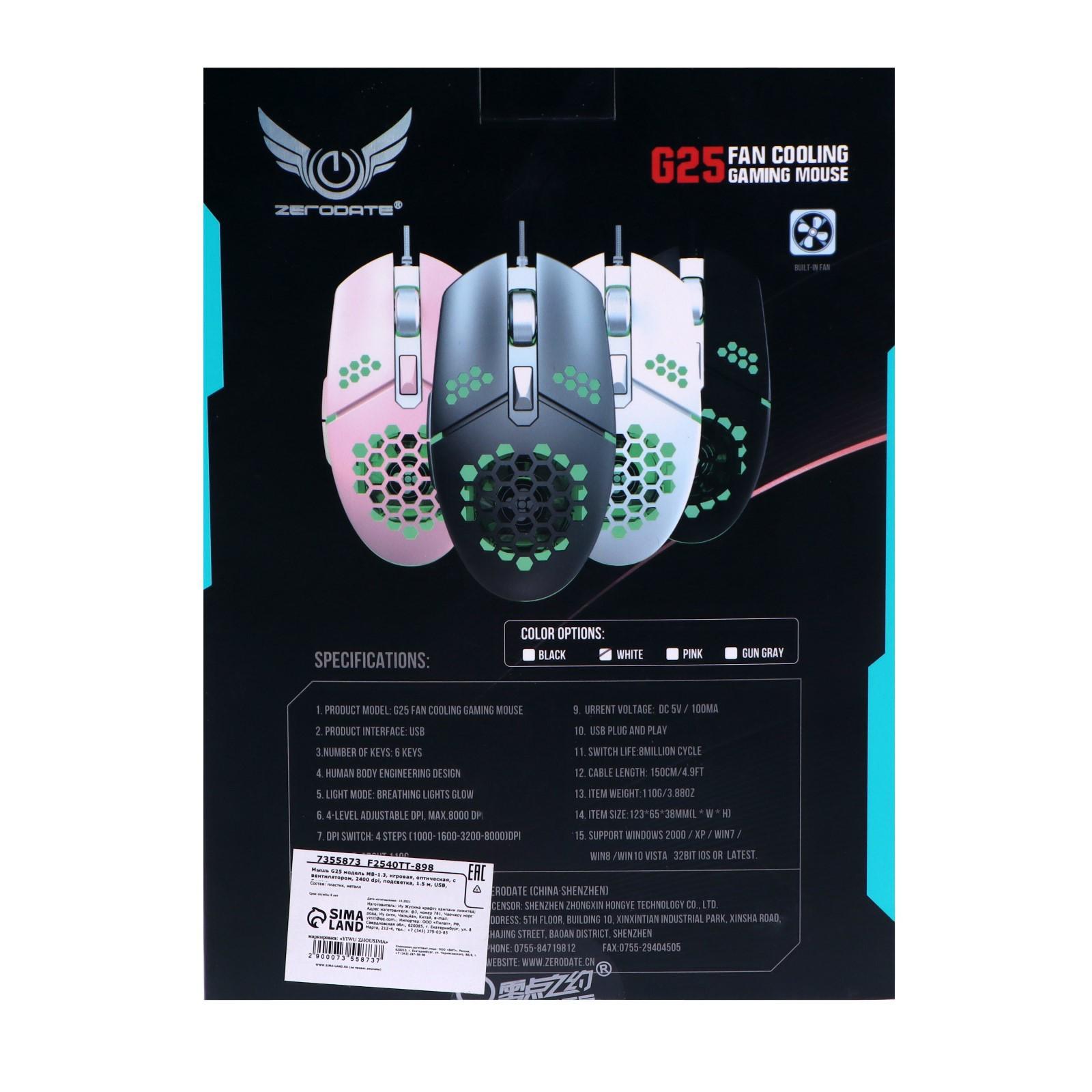 Мышь G25 MB-1.3, игровая, оптическая, с вентилятором, 2400 dpi, подсветка, 1.5 м, USB, белая 7355873