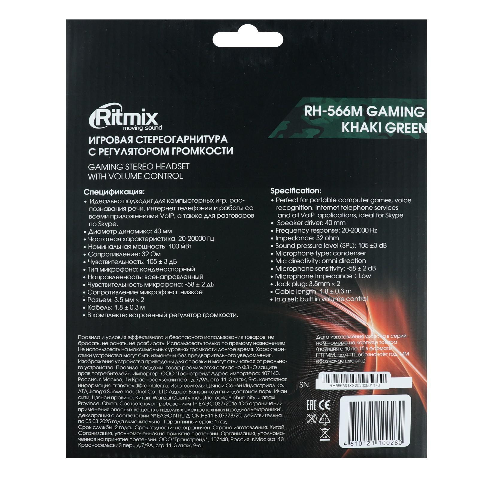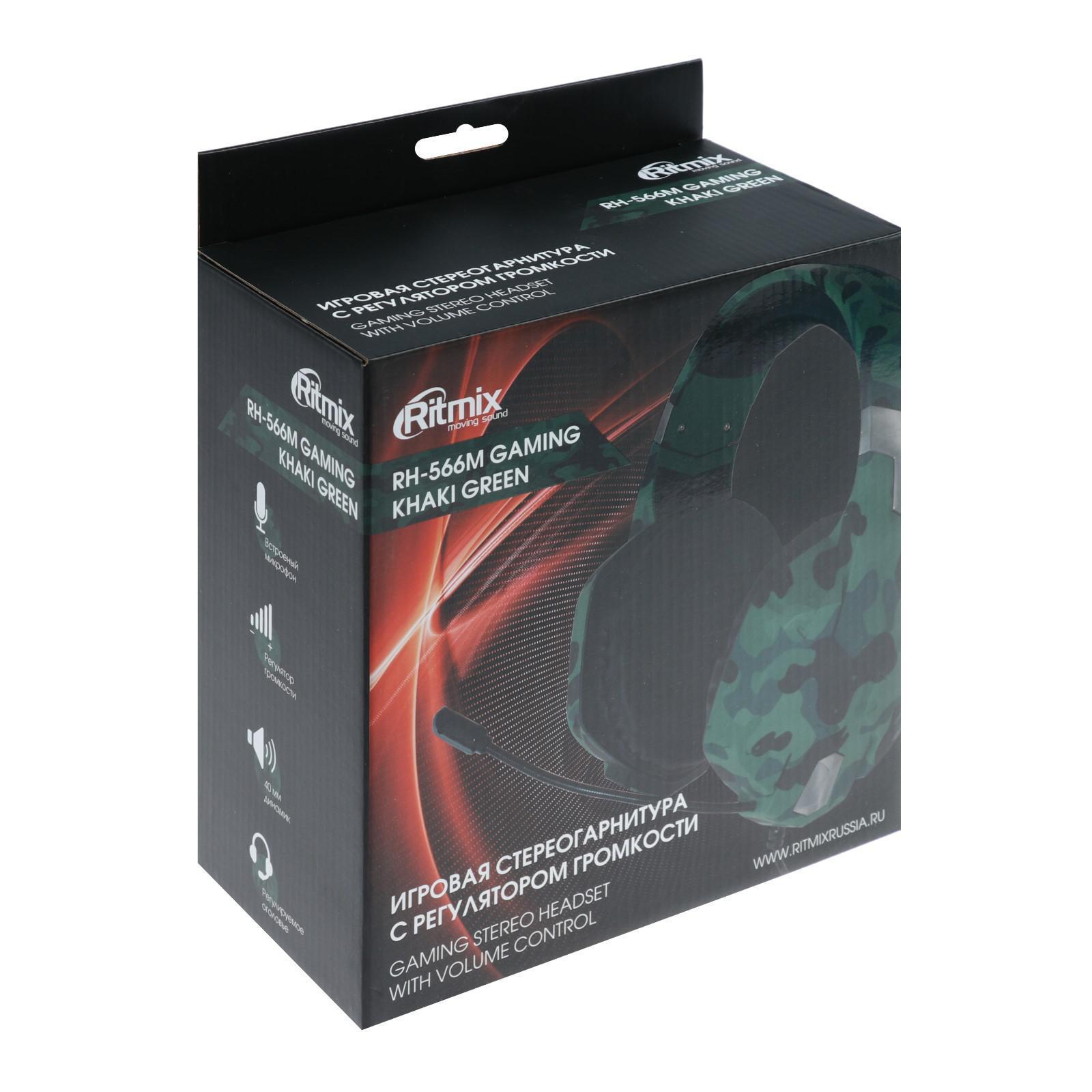 Наушники RITMIX RH-566M, игровые, полноразмерные, микрофон, 3.5 мм, 1.8 м, камуфляж 6973956