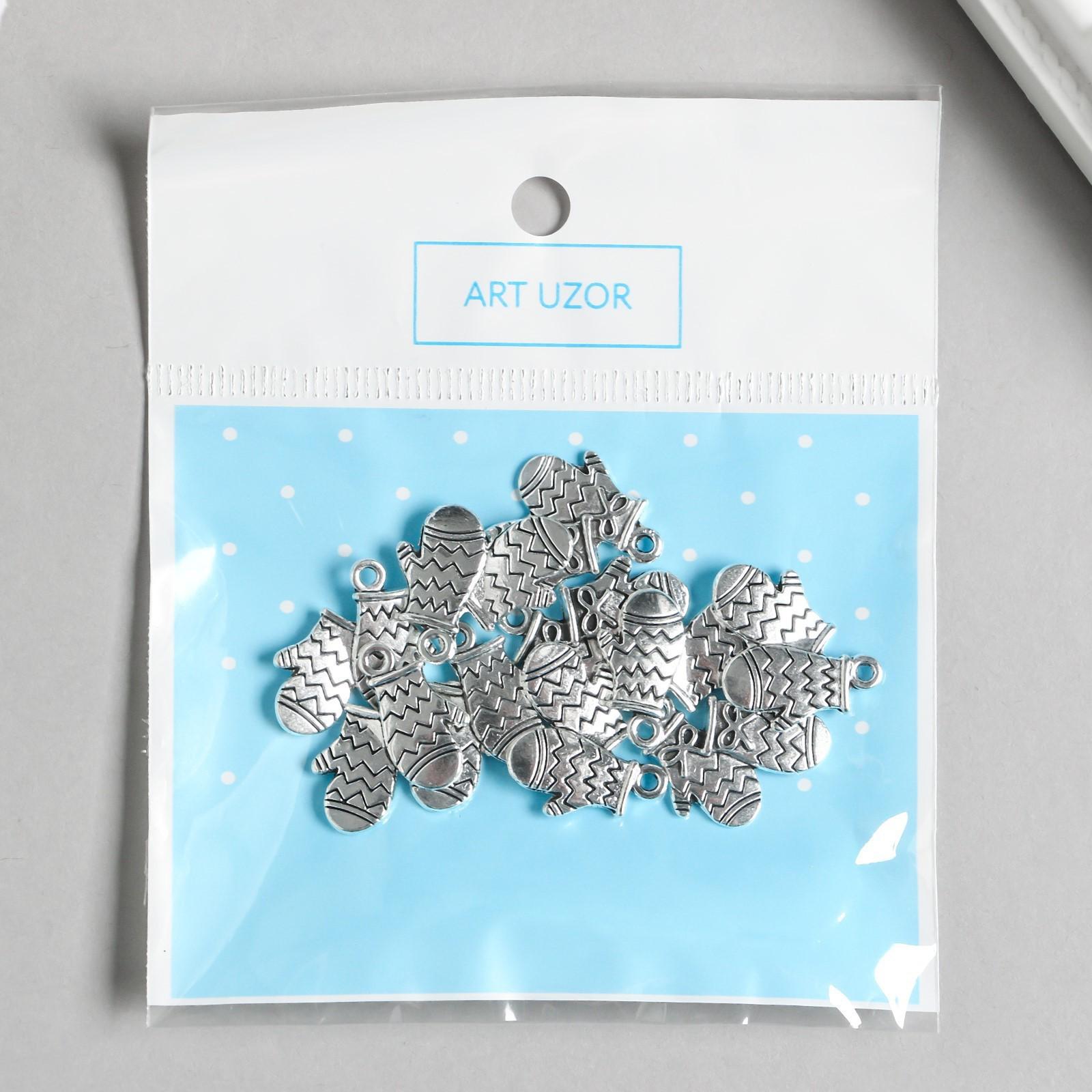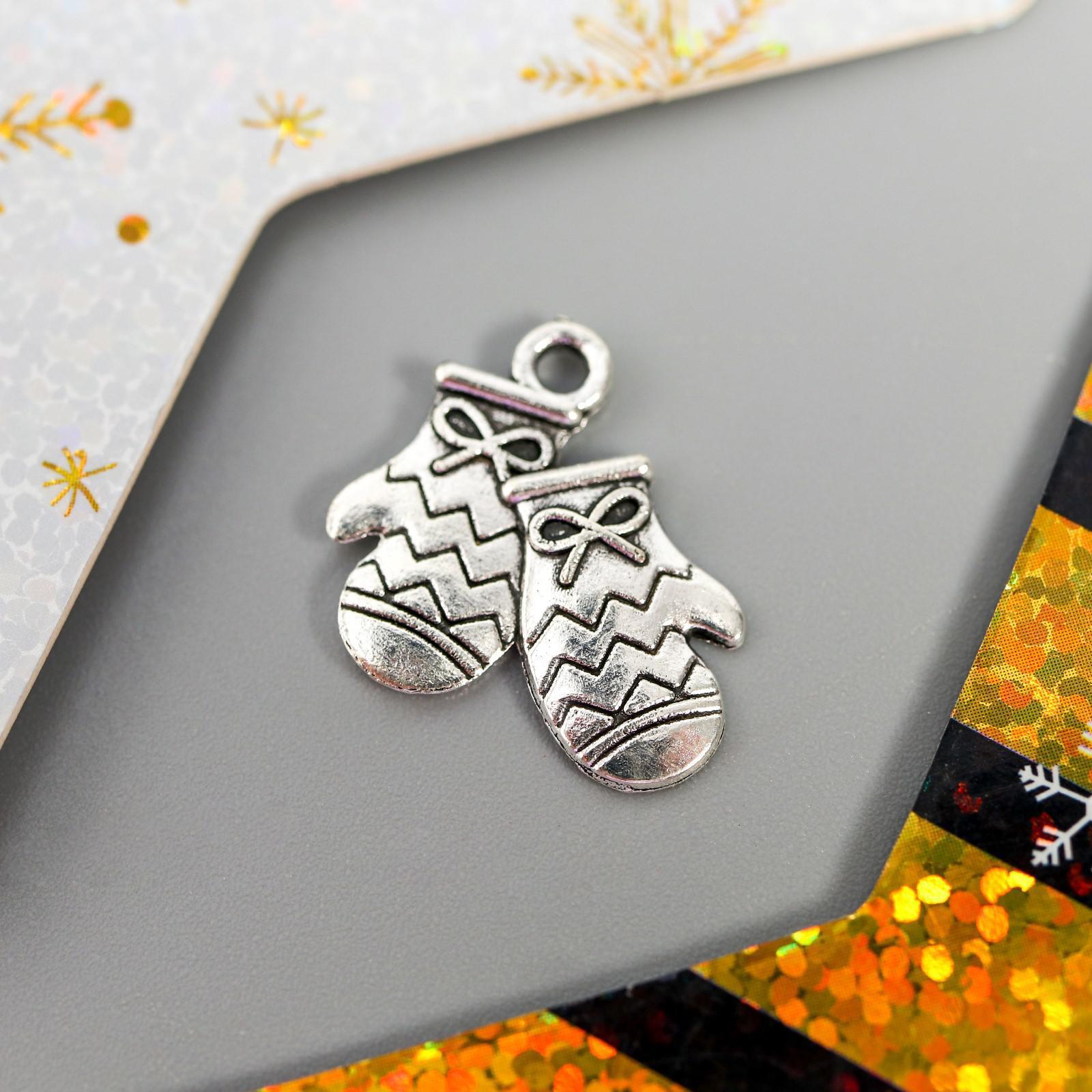Декор для творчества металл "Варежки" серебро 1,7х1,6 см 3531369