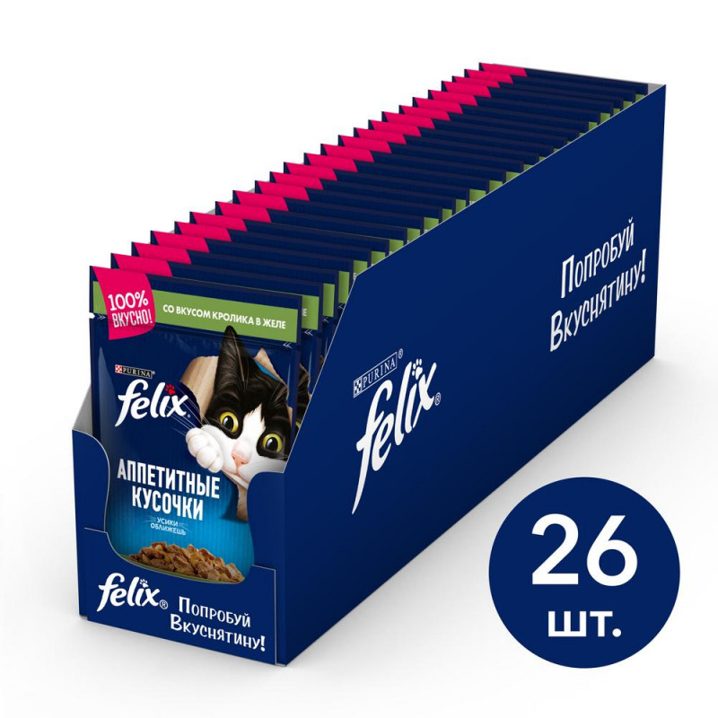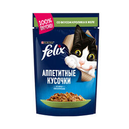 Влажный корм Felix Аппетитные кусочки для взрослых кошек, с кроликом в желе 85 г Упаковка 85г Акция -13%