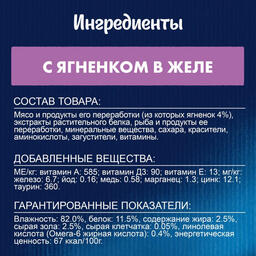 Влажный корм Felix Аппетитные кусочки для взрослых кошек, с ягненком в желе 85 г Упаковка 85г Акция -13%