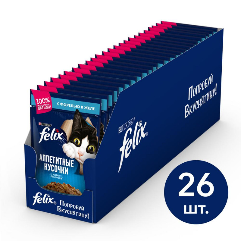 Влажный корм Felix Аппетитные кусочки для взрослых кошек, с форелью в желе 85 г Упаковка 85г Акция -13%