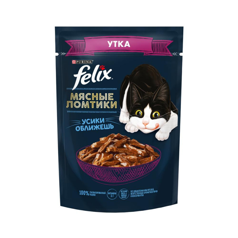 FELIX Мясные Ломтики, Корм консервированный полнорационный для взрослых кошек, с уткой 75г Упаковка 75г Акция -13%