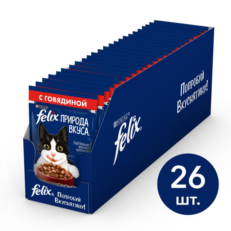 Влажный корм Felix Природа вкуса для взрослых кошек, с говядиной в соусе 85 г Упаковка 85г Акция -13%