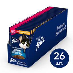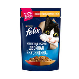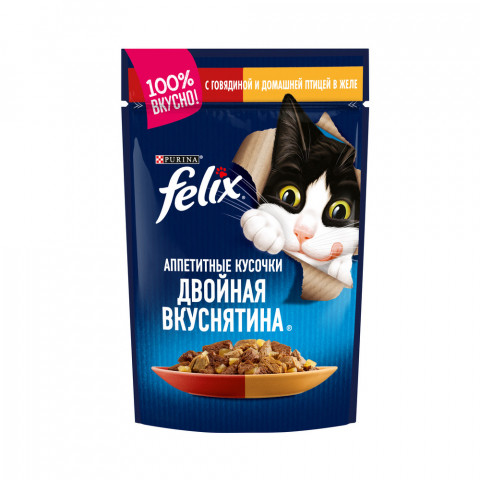 Felix Аппетитные кусочки, Двойная вкуснятина для взрослых кошек, с говядиной и домашней птицей, в желе 85 г Упаковка 85г Акция -13%