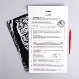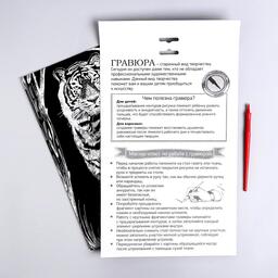 Чтобы создать невероятно красивую гравюру, достаточно процарапать намеченные контуры рисунка специальным инструментом — штихелем. И дети, и взрослые будут с удовольствием соскребать верхний слой гравюры с контурами будущей картины, под которым находится сверкающая фольга — ведь это так увлекательно!