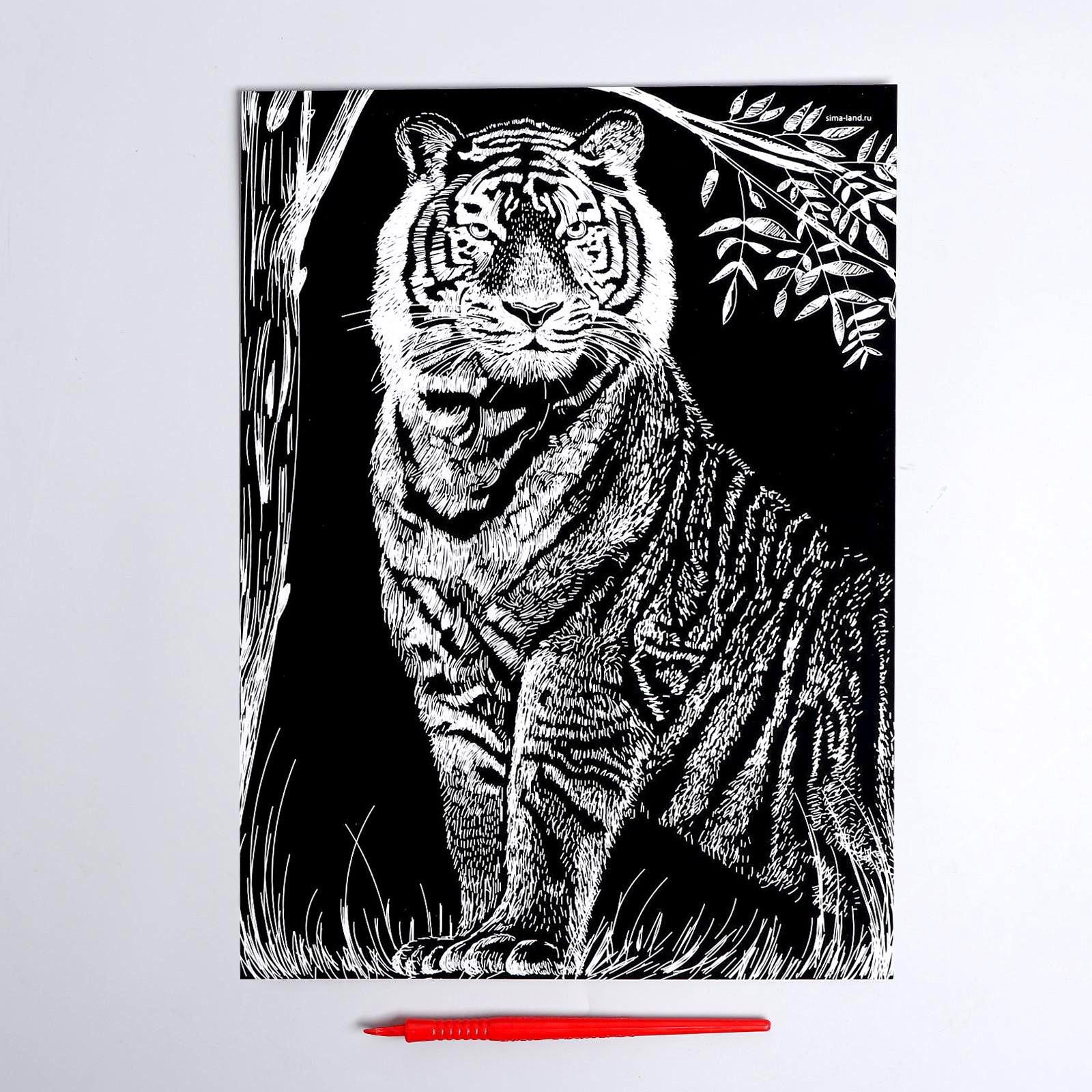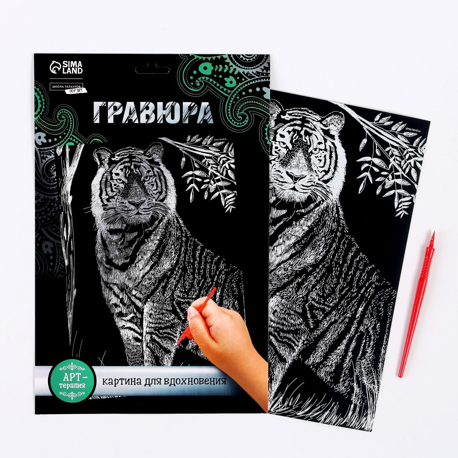 Гравюра на подложке «Тигр» с металлическим эффектом «серебро» А4 — замечательный и оригинальный подарок, который понравится каждому любителю творчества!