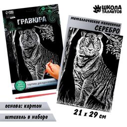 Гравюра на подложке «Тигр» с металлическим эффектом «серебро» А4 4063546