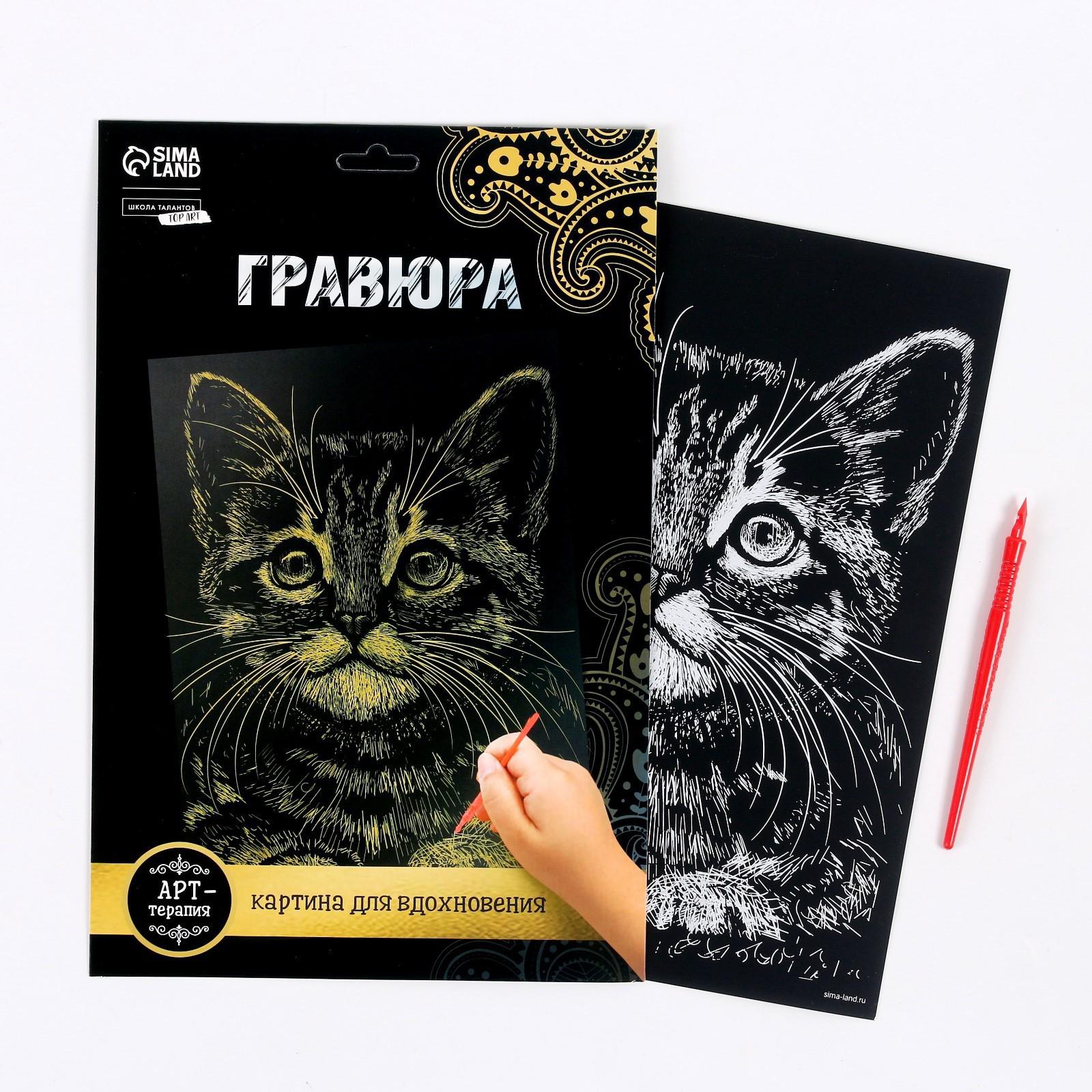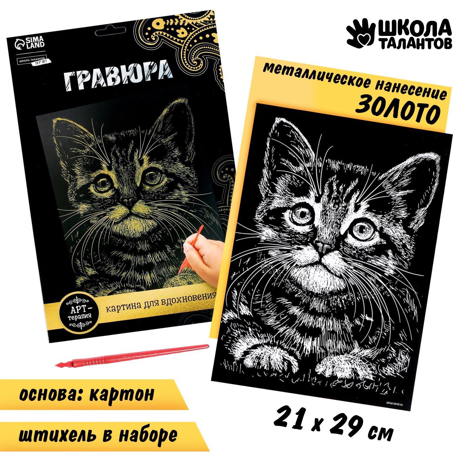 Гравюра «Котёнок» с металлическим эффектом «золото» А4 2147973