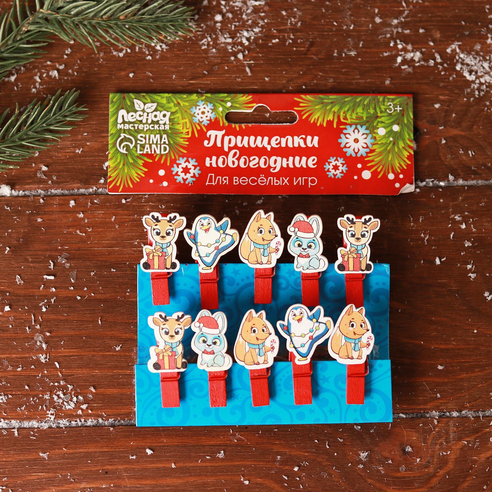 Набор декоративных прищепок «Весёлые зверята» 10 шт. 6909549