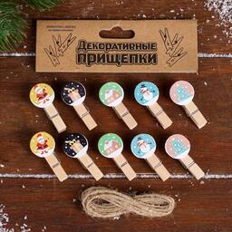 Набор декоративных прищепок "С новым годом" набор 10 шт. 4464726