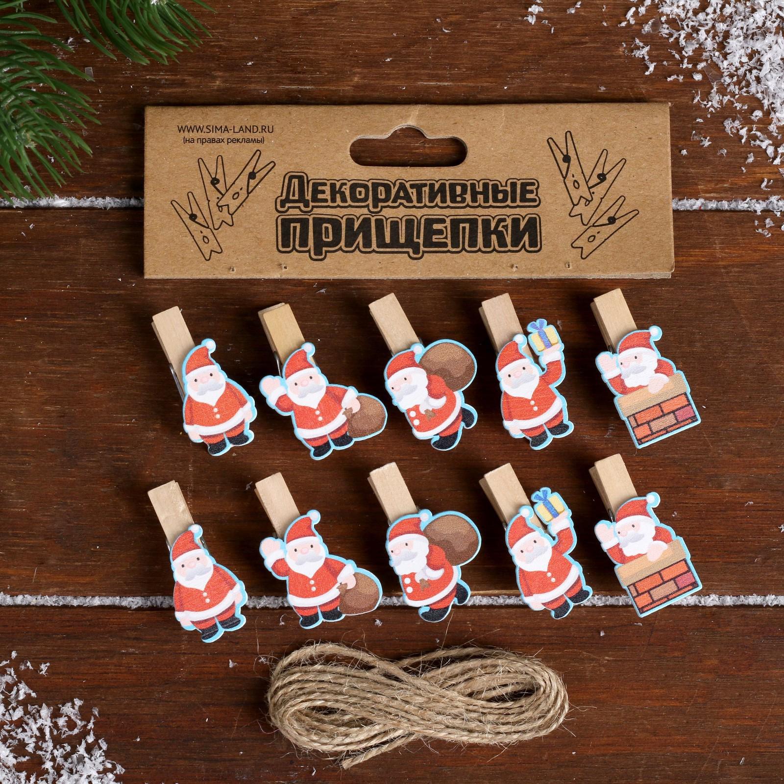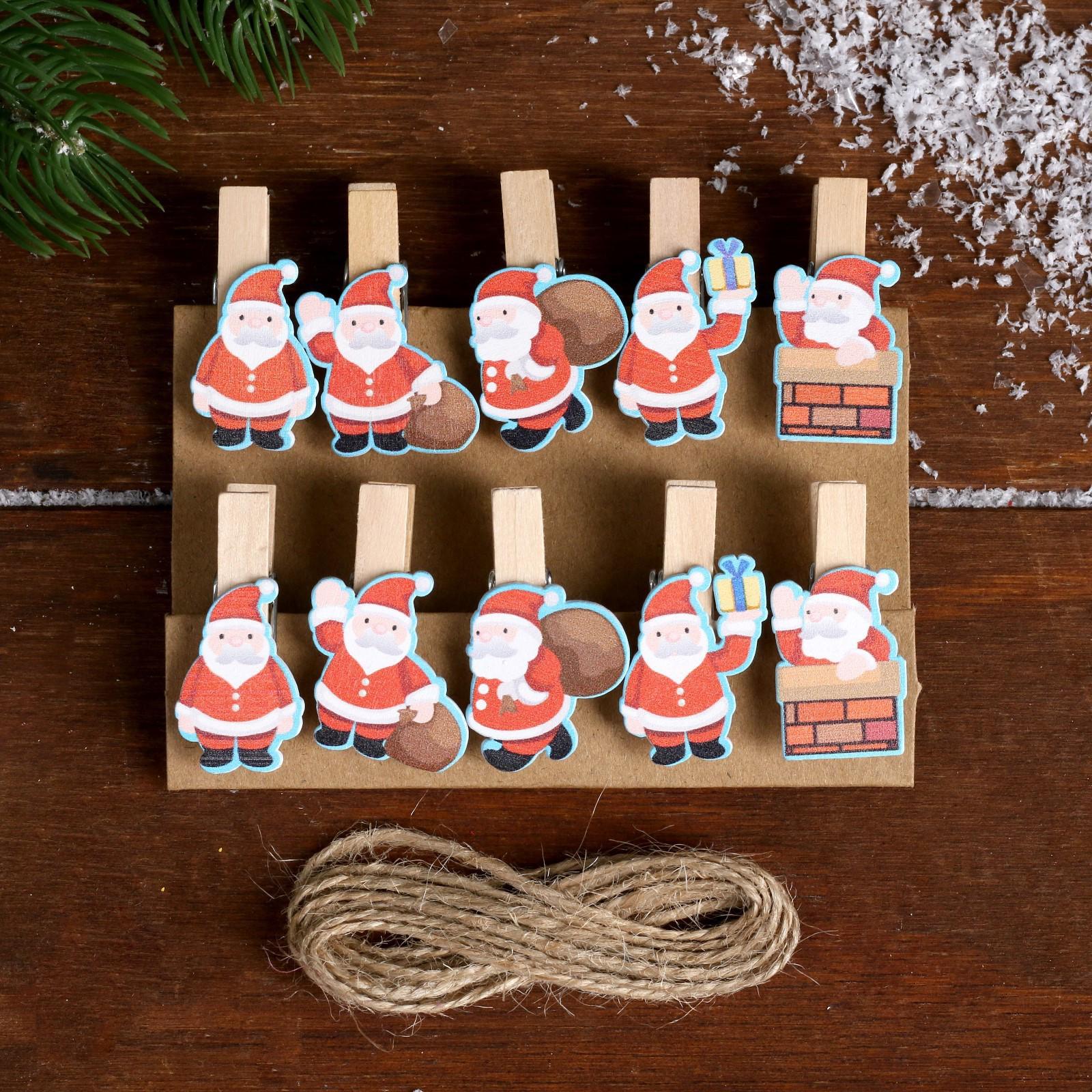Набор декоративных прищепок "Дед Мороз" набор 10 шт. 4464728