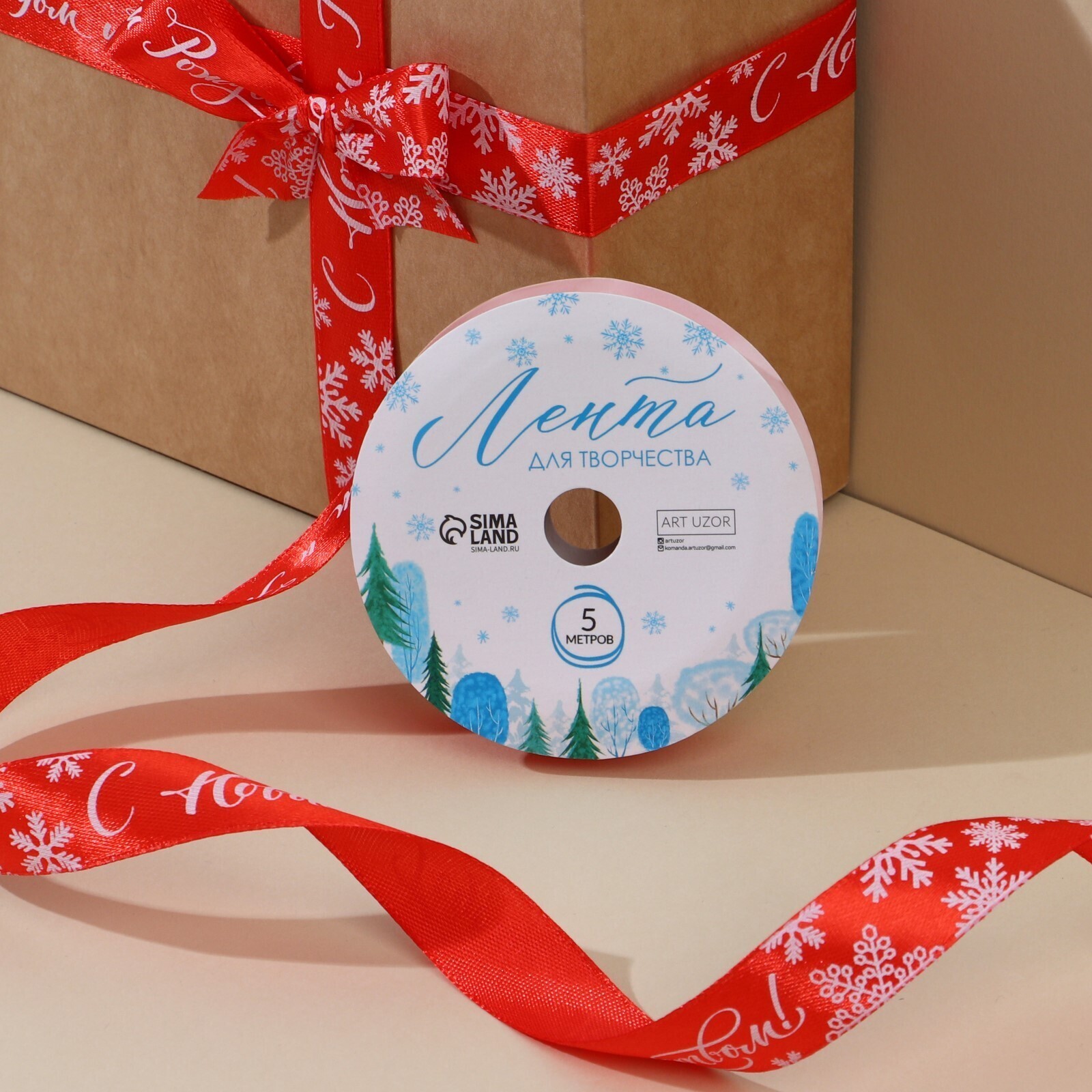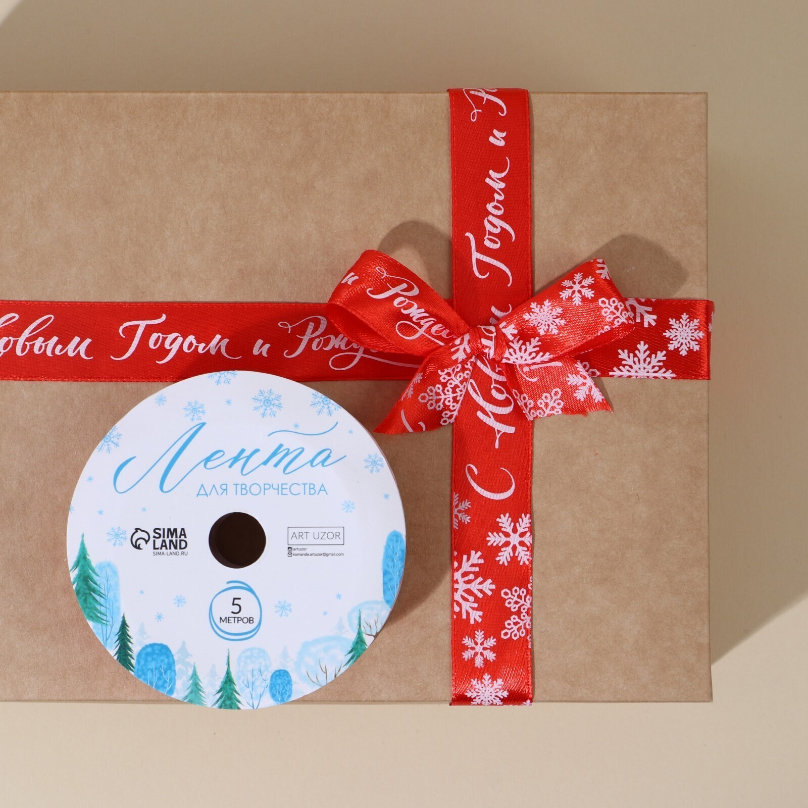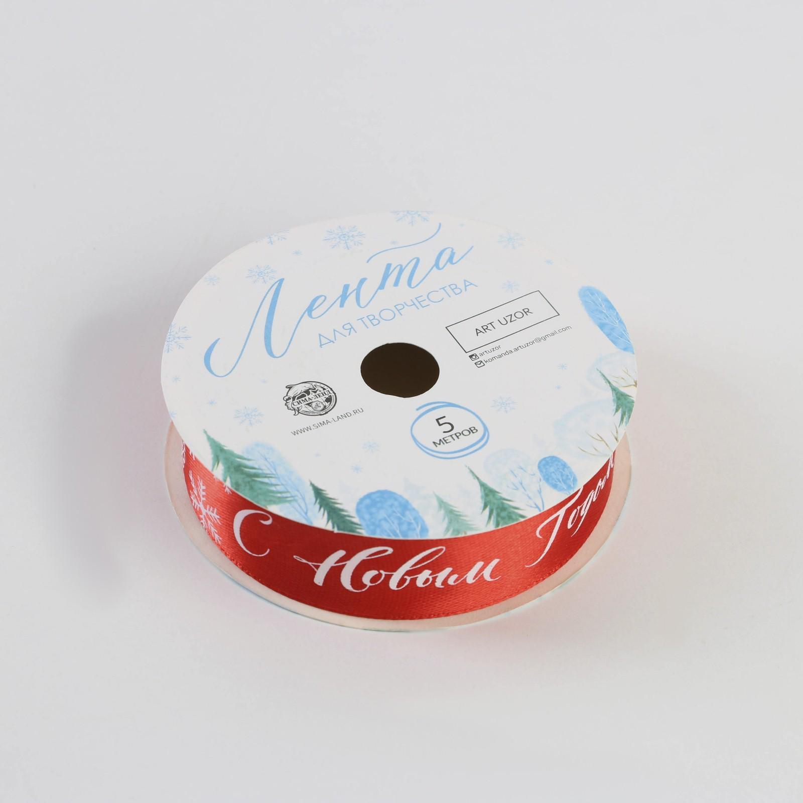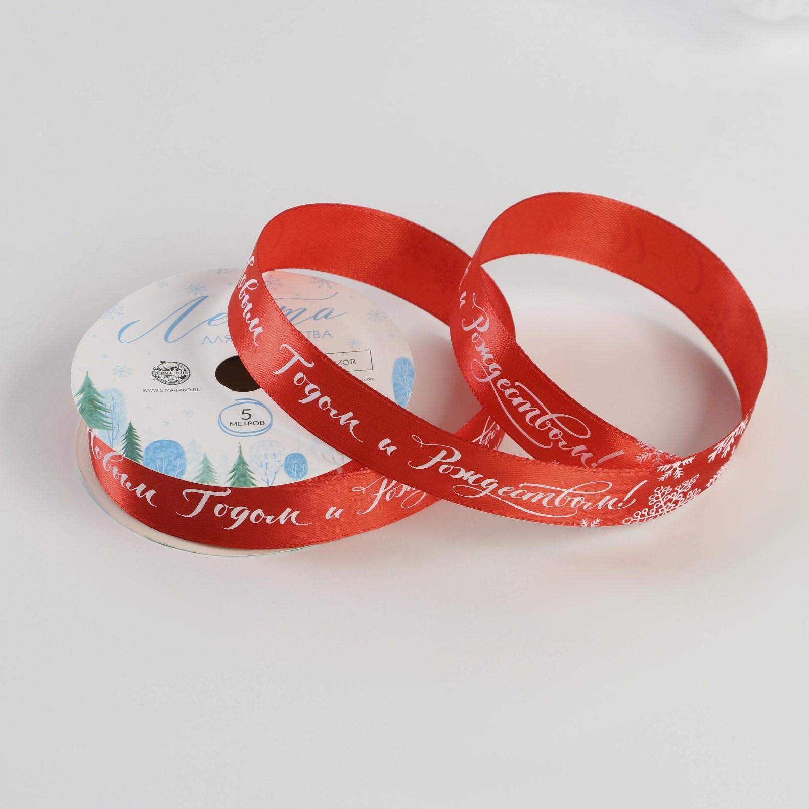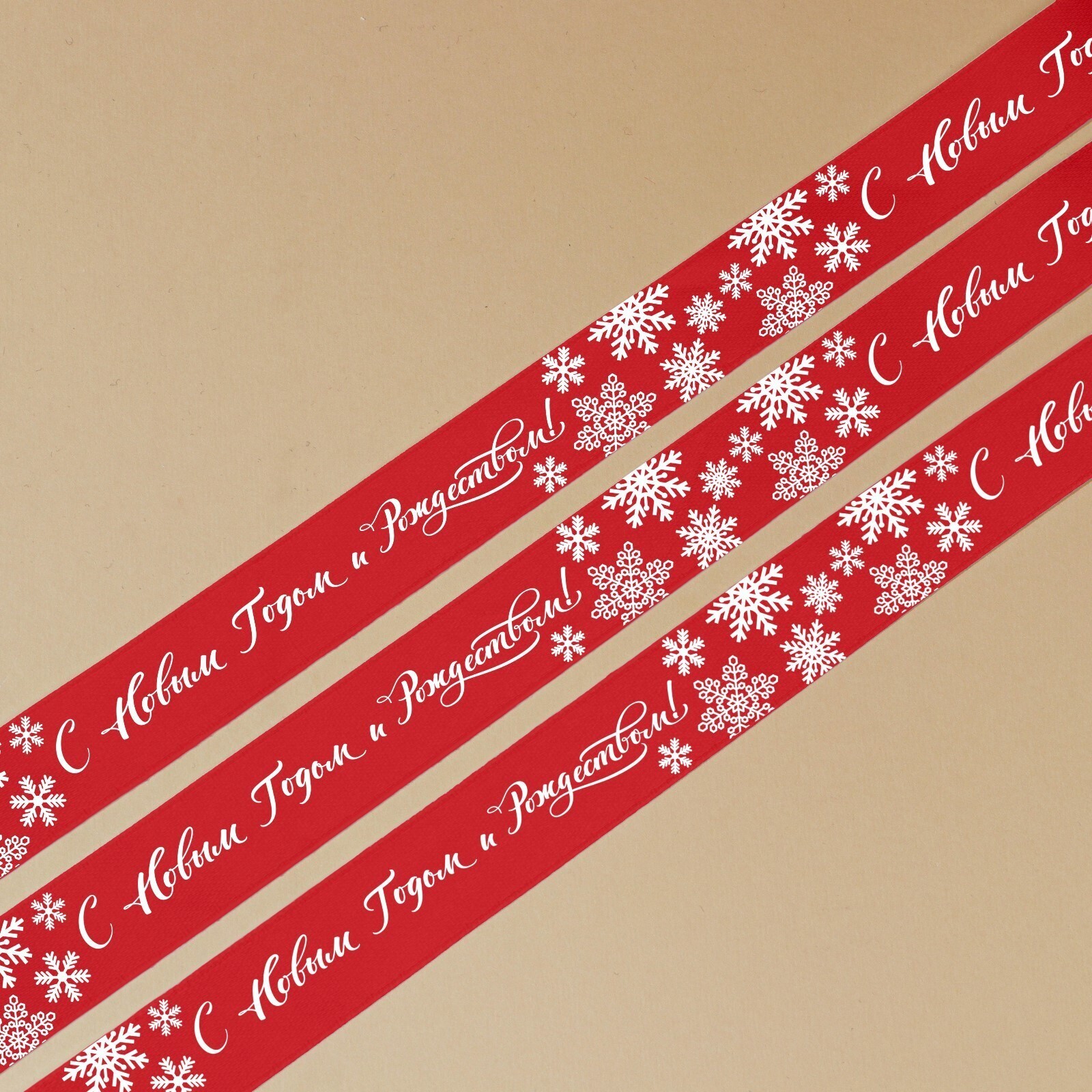 Лента декоративная атласная «С Новым годом и Рождеством!», 2 см × 5 м 4224445