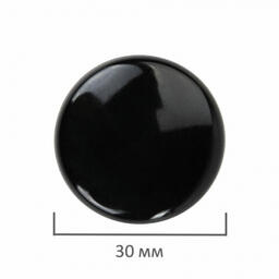 Диаметр магнита составляет 30 мм. 10 штук в комплекте. Надежно удерживаются на любой железной или стальной поверхности. Магниты круглой формы выполнены из пластика черного цвета. Поставляются в удобной блистерной упаковке с европодвесом.
